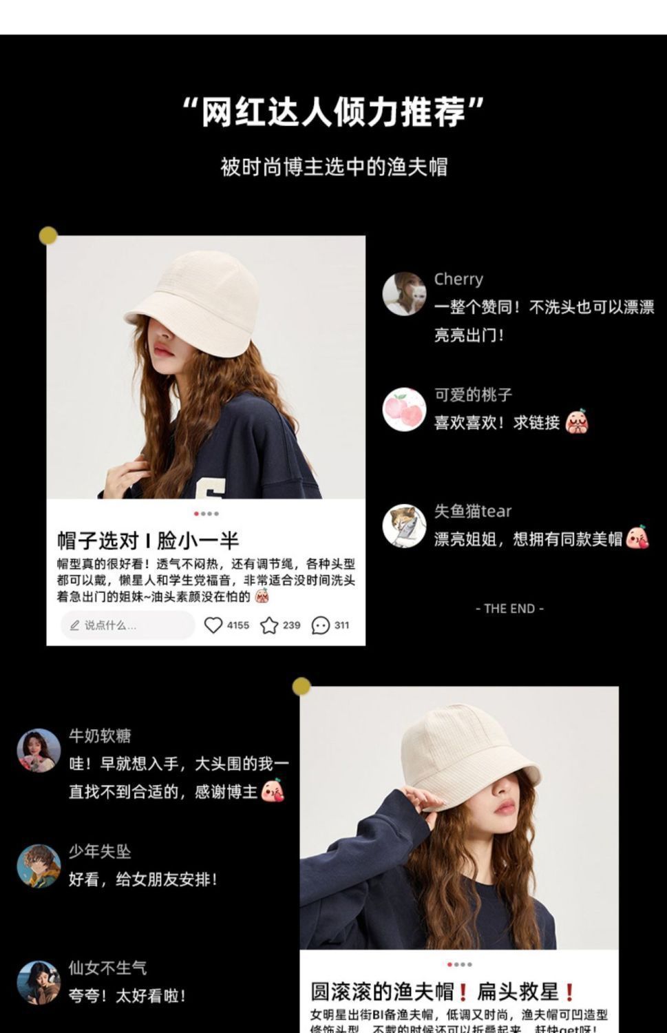 와플 어부 모자 2024 새로운 가을, 겨울 여성 일반 얼굴 커버 둥근 얼굴 큰 머리 둘레 태양 모자에 적합스토어 가기