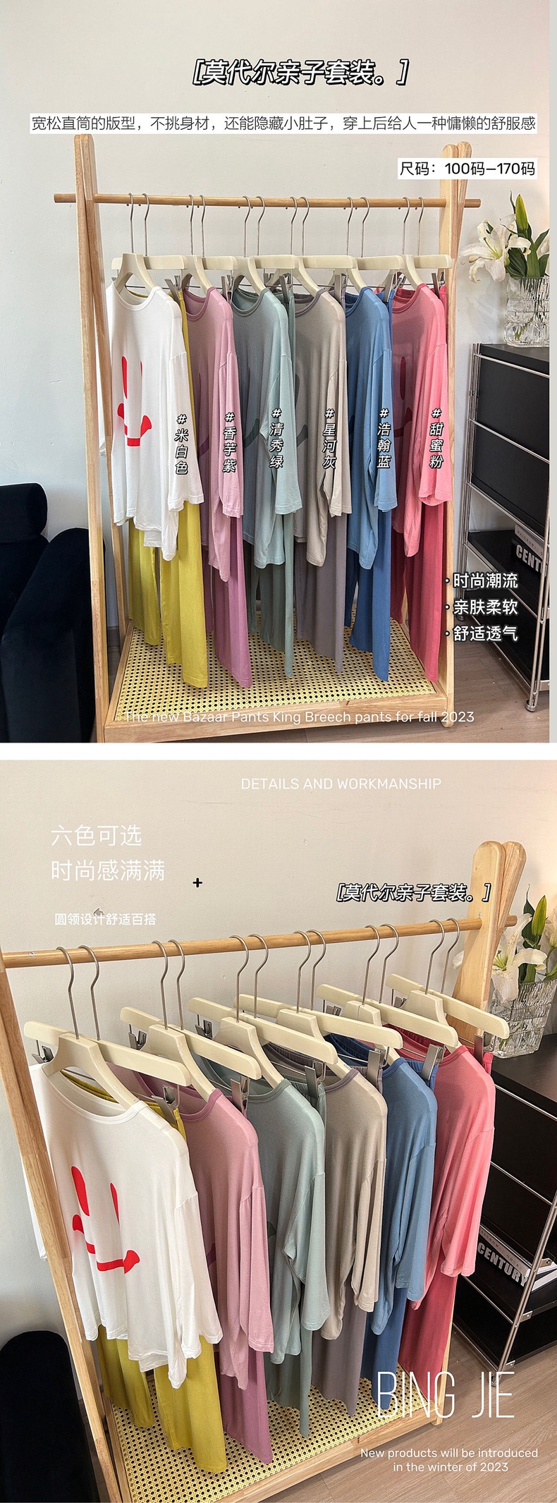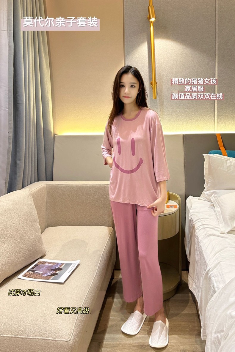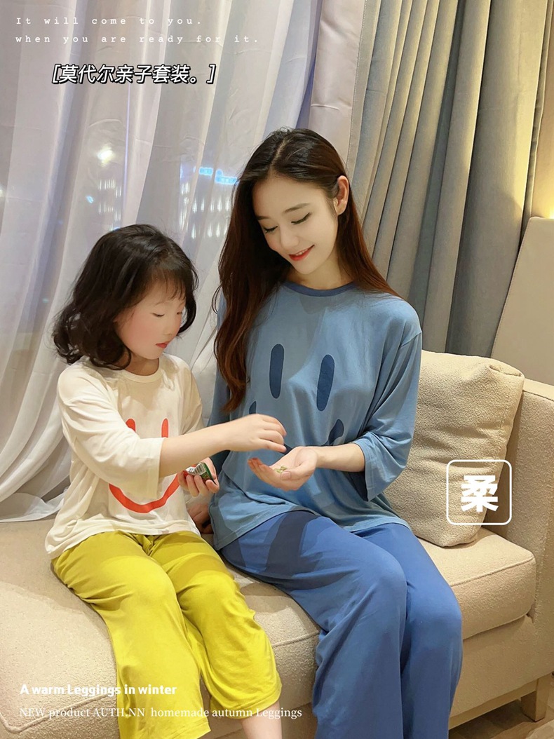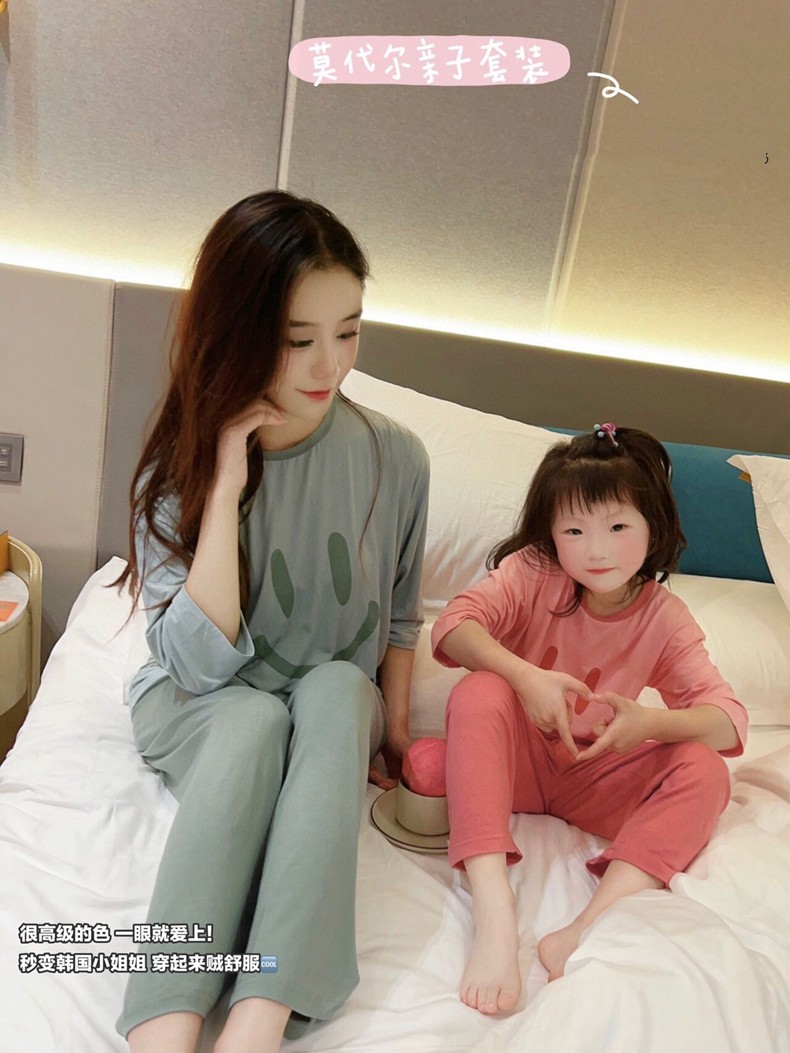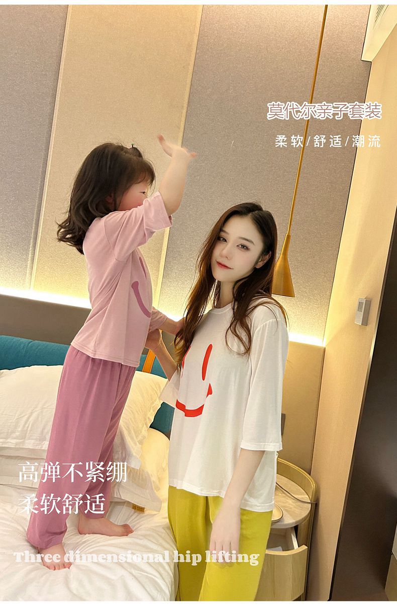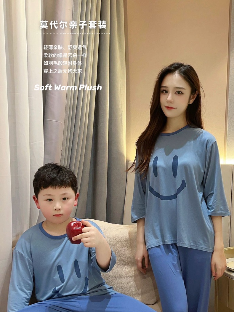 봄과 여름 모달 가정 옷 세트 웃는 부모-자식 아기 소년과 소녀 자른 소매 발목 길이 바지 잠옷스토어 가기