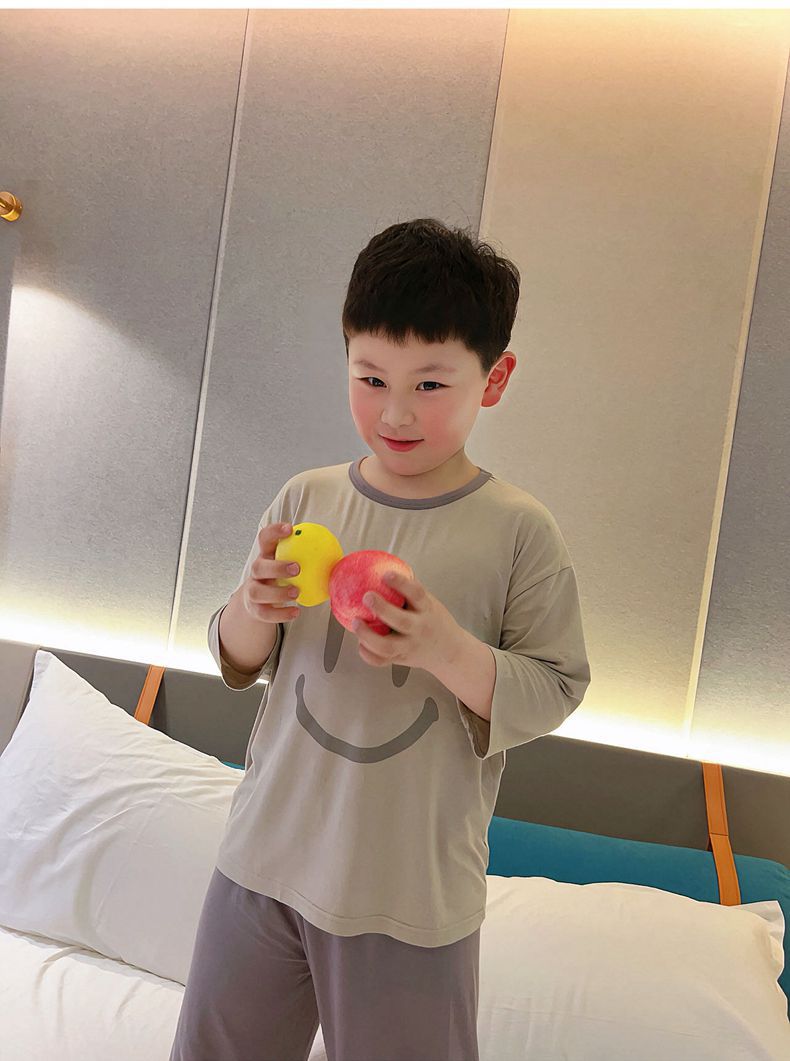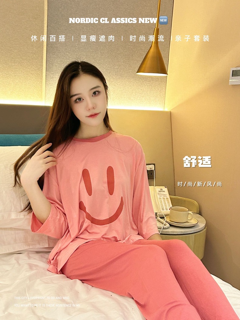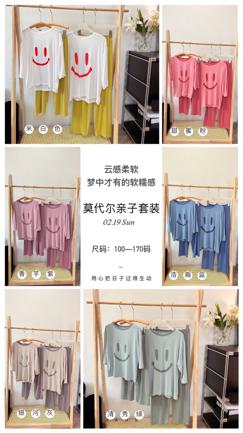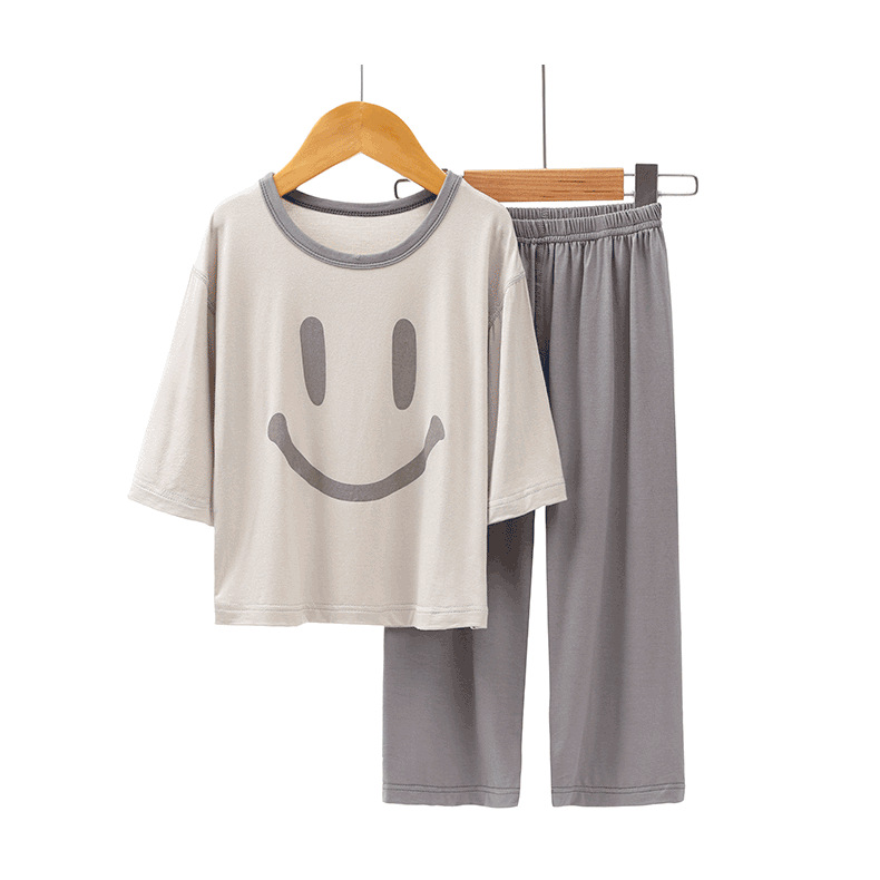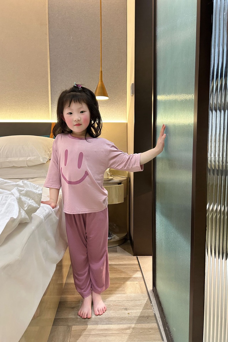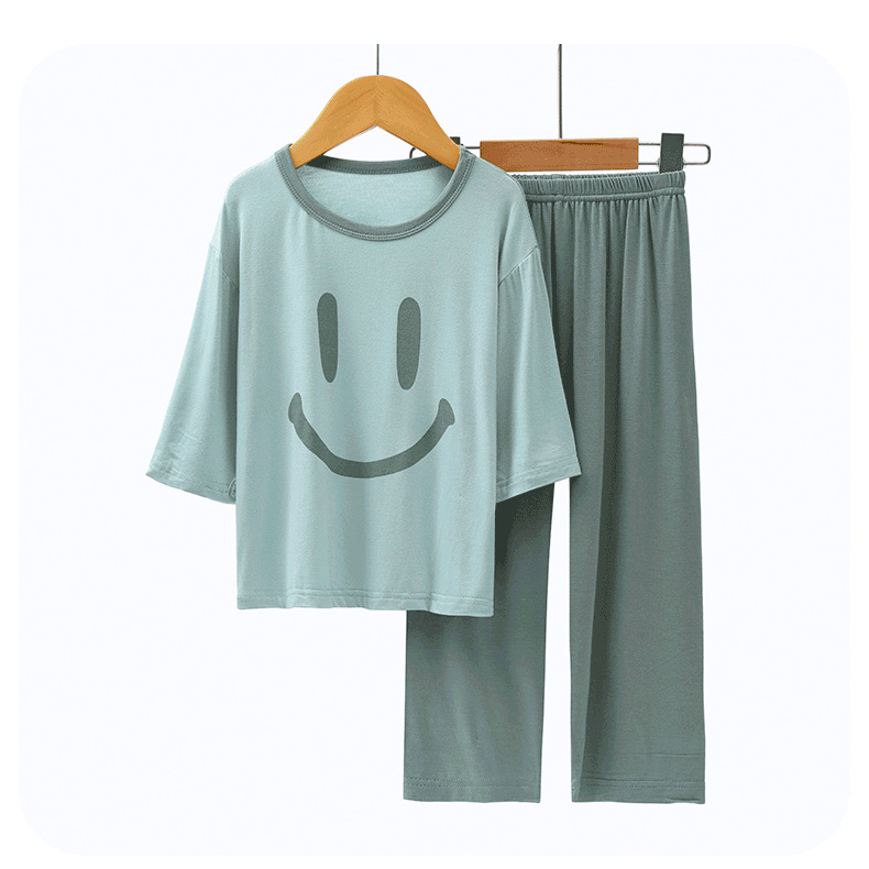 봄과 여름 모달 가정 옷 세트 웃는 부모-자식 아기 소년과 소녀 자른 소매 발목 길이 바지 잠옷스토어 가기