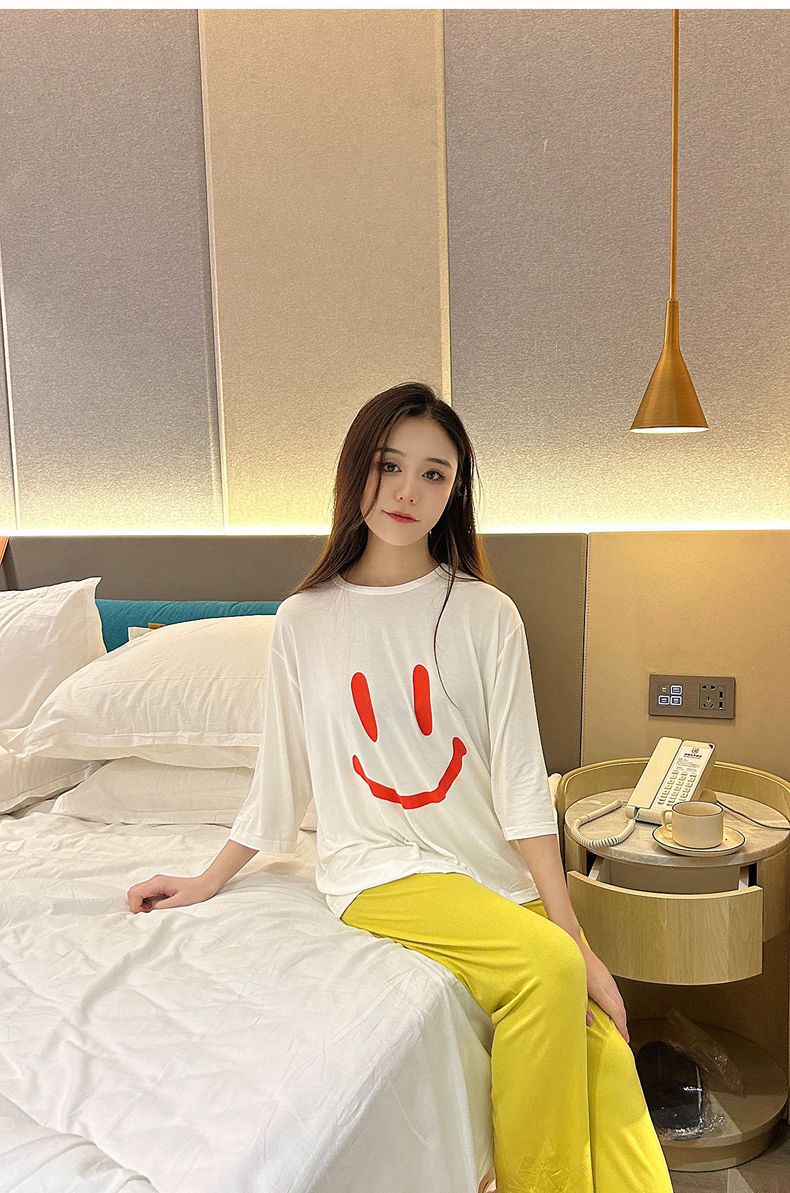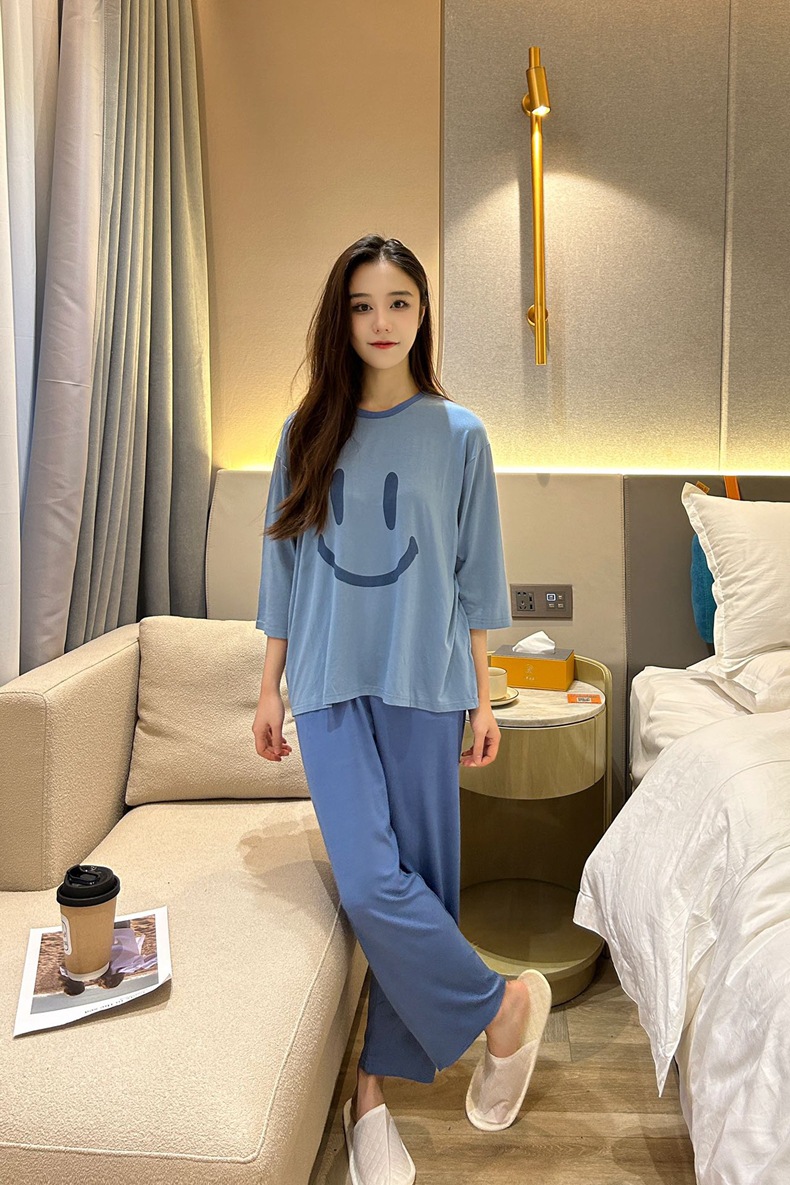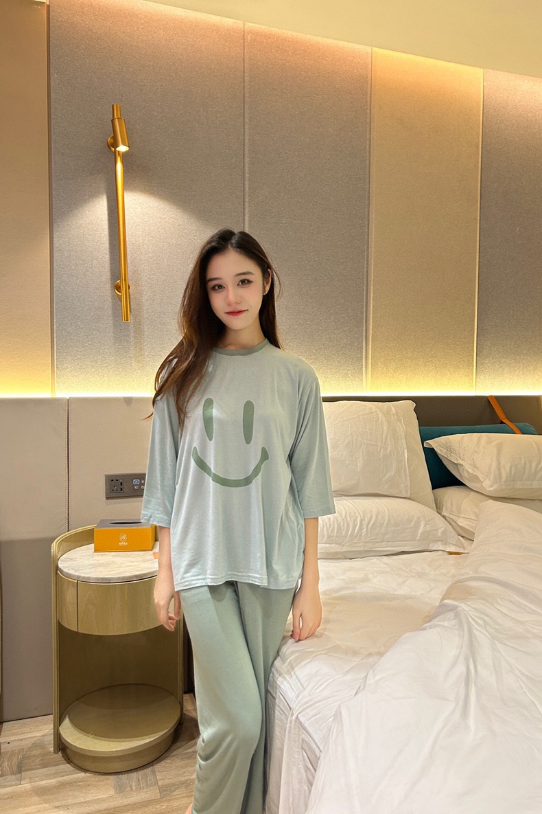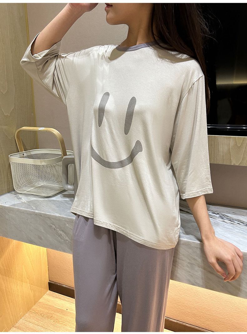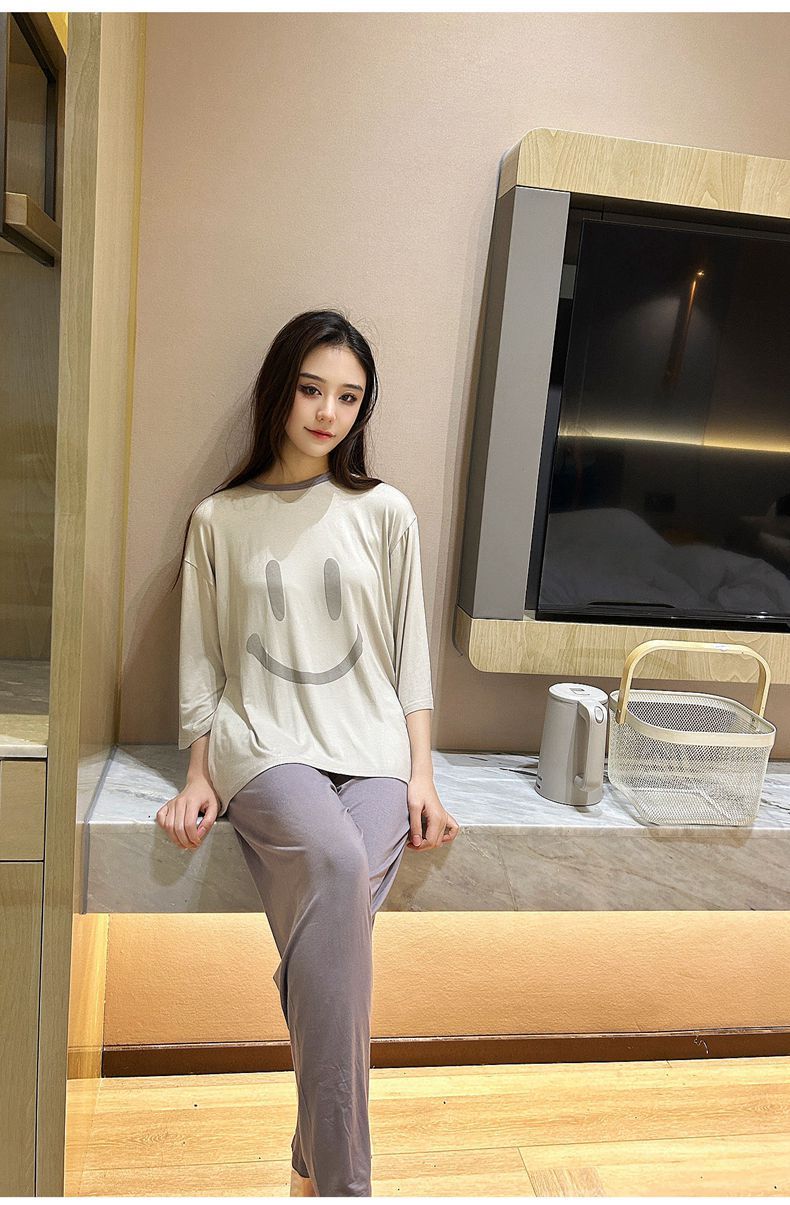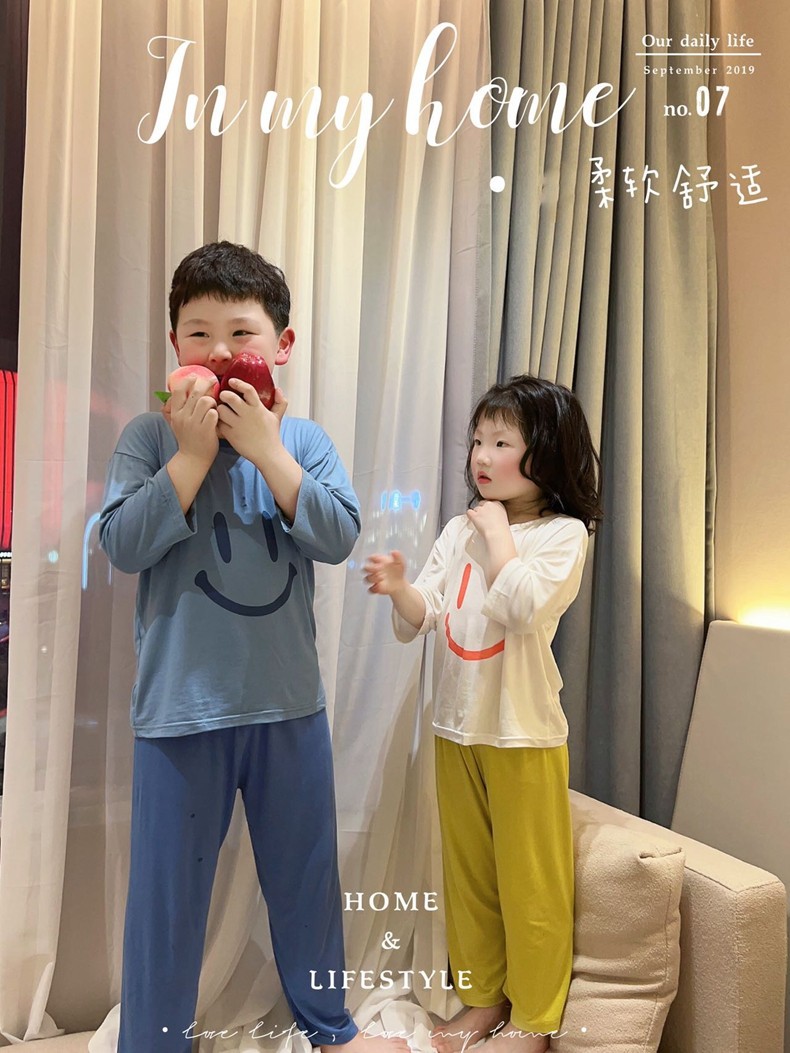 봄과 여름 모달 가정 옷 세트 웃는 부모-자식 아기 소년과 소녀 자른 소매 발목 길이 바지 잠옷스토어 가기