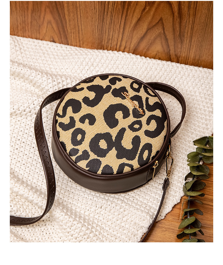 패션 복고풍 레오파드 무늬 작은 라운드 가방 여성의 인기있는 모든 경기 숄더 백 크로스 바디 여성 가방 캐주얼 휴대용 여성 가방
