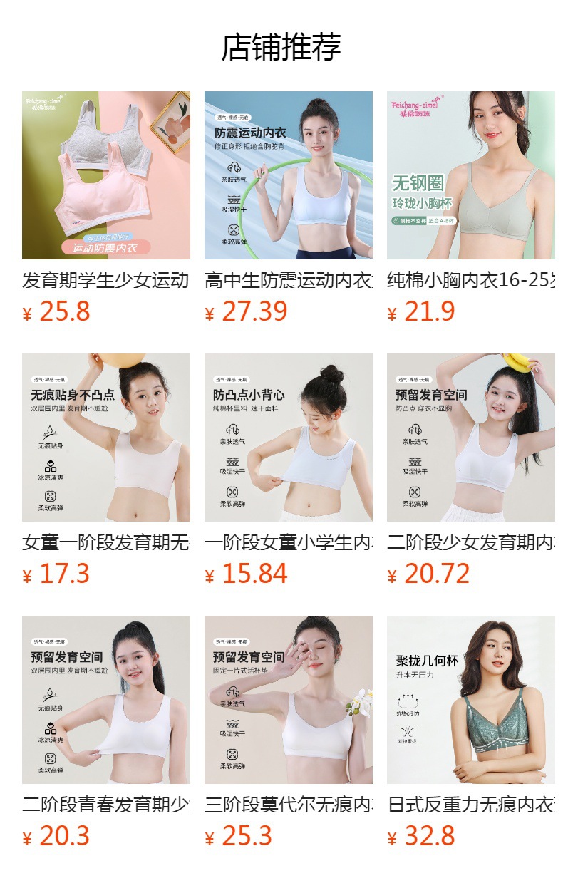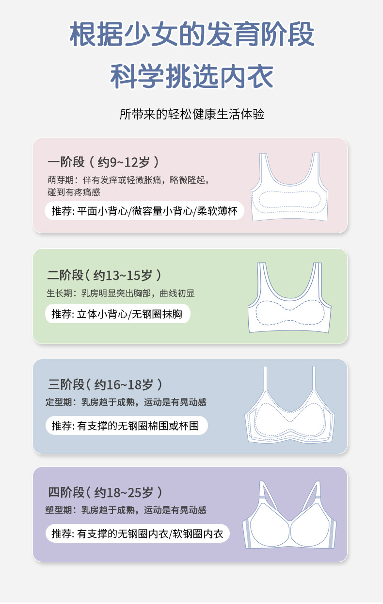 1 단계 십대 발달기 소 조끼 면 안감 아동 여아 속옷 초등학생 여름 스포츠 브라스토어 가기