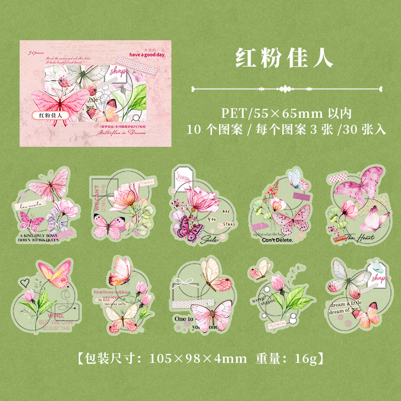 아름다운 나비 꿈 안개 비 시리즈 PET 스티커 나비 콜라주 손 계정 DIY 기본 장식 스티커 30