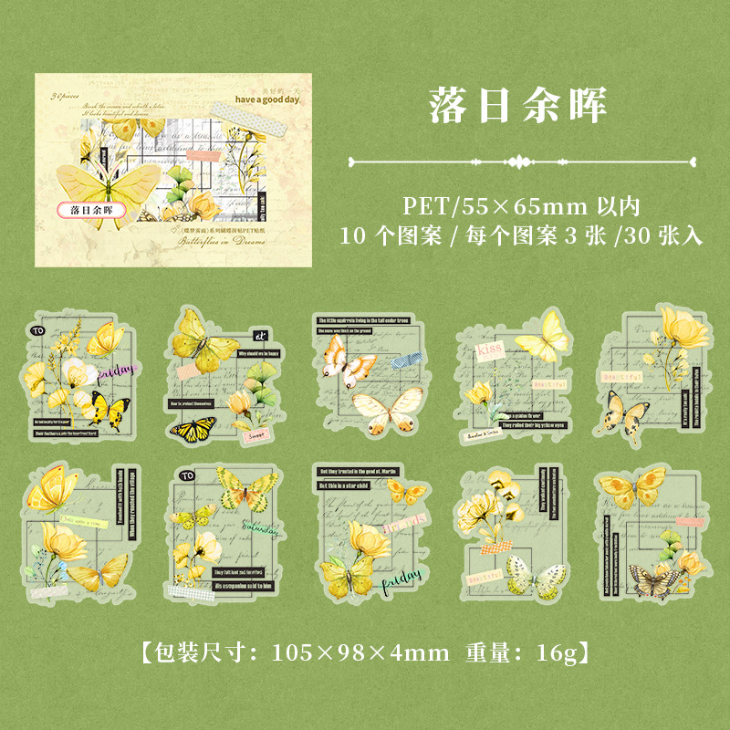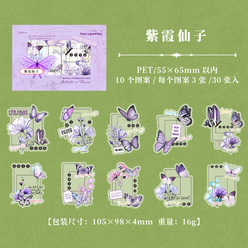 아름다운 나비 꿈 안개 비 시리즈 PET 스티커 나비 콜라주 손 계정 DIY 기본 장식 스티커 30스토어 가기