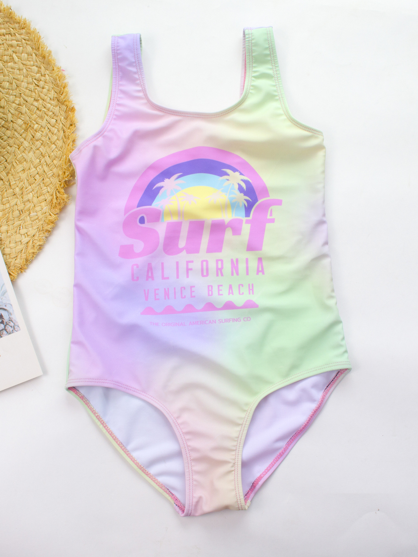 유럽과 미국 소녀 원피스 수영복 편지 인쇄 바느질 어린이 수영복 아마존 새로운 원피스 365