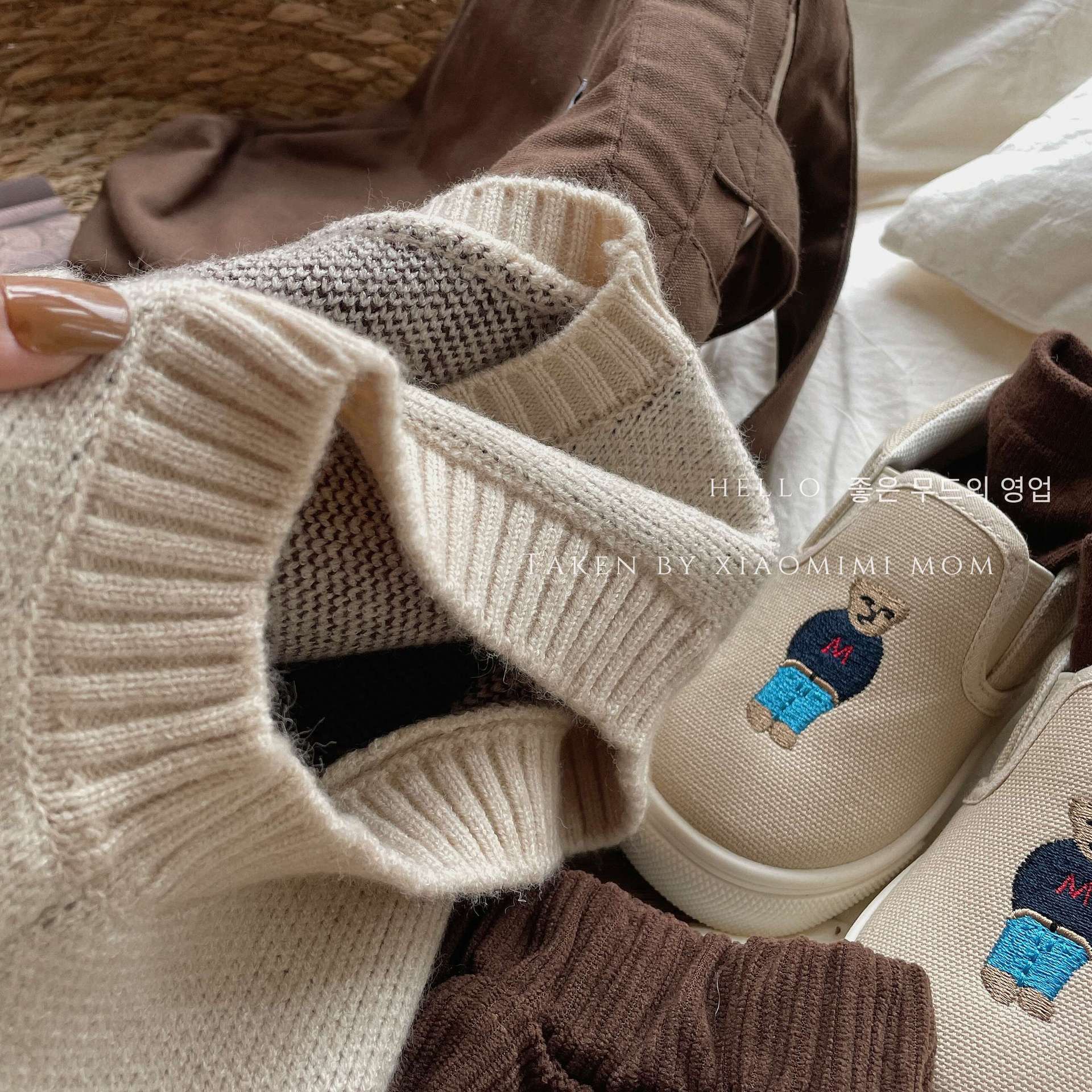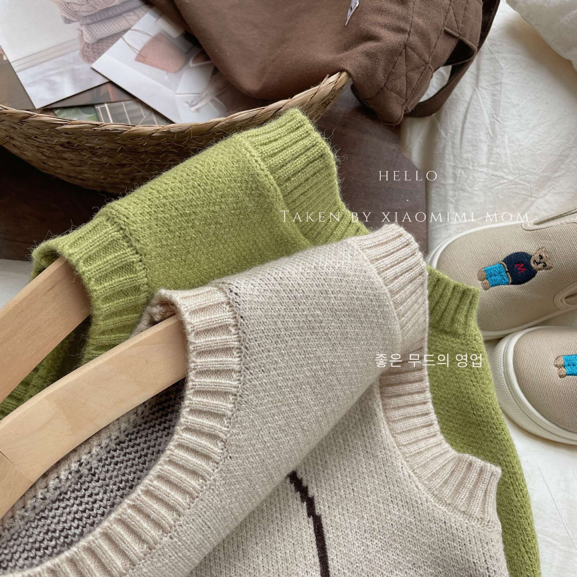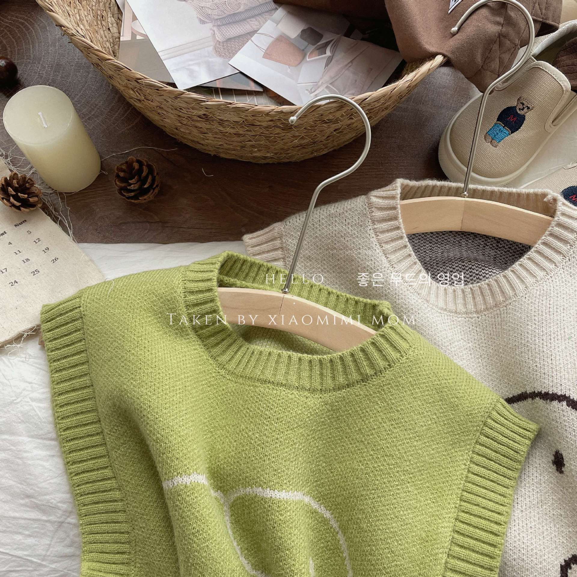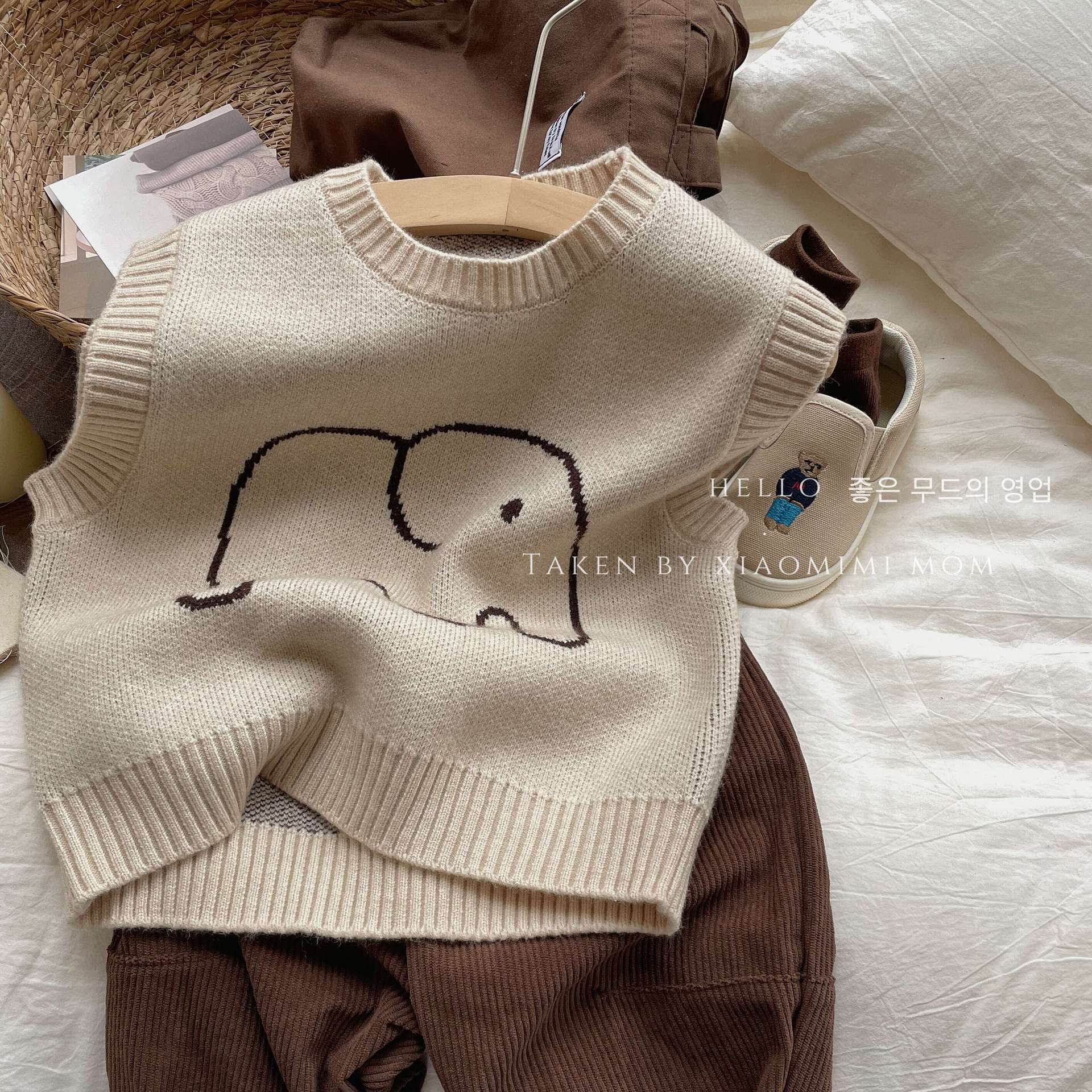 2025 한국 어린이 만화 코끼리 자카드 니트 조끼 봄 가을 신상 남녀 공용 라운드넥 풀오버 스웨터스토어 가기
