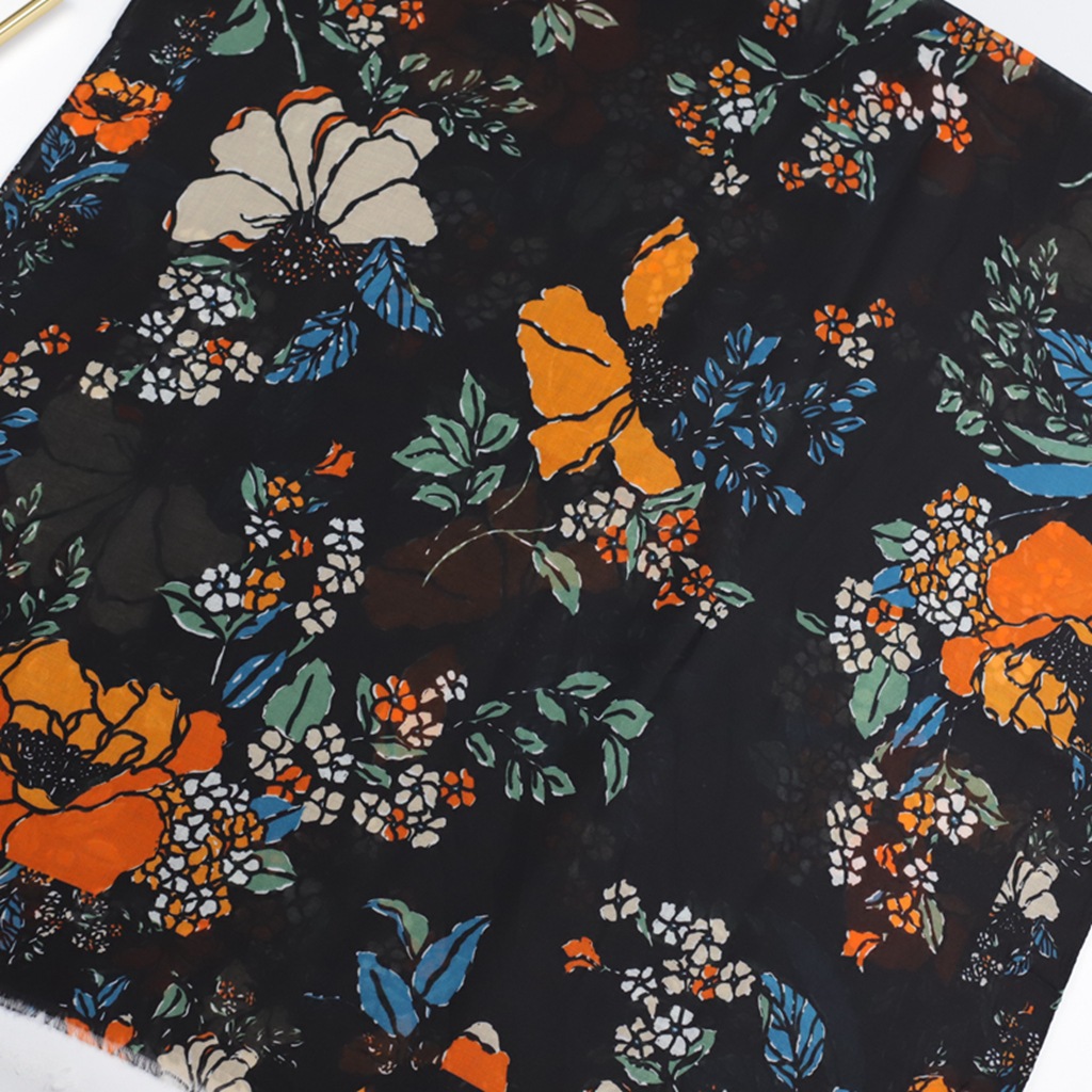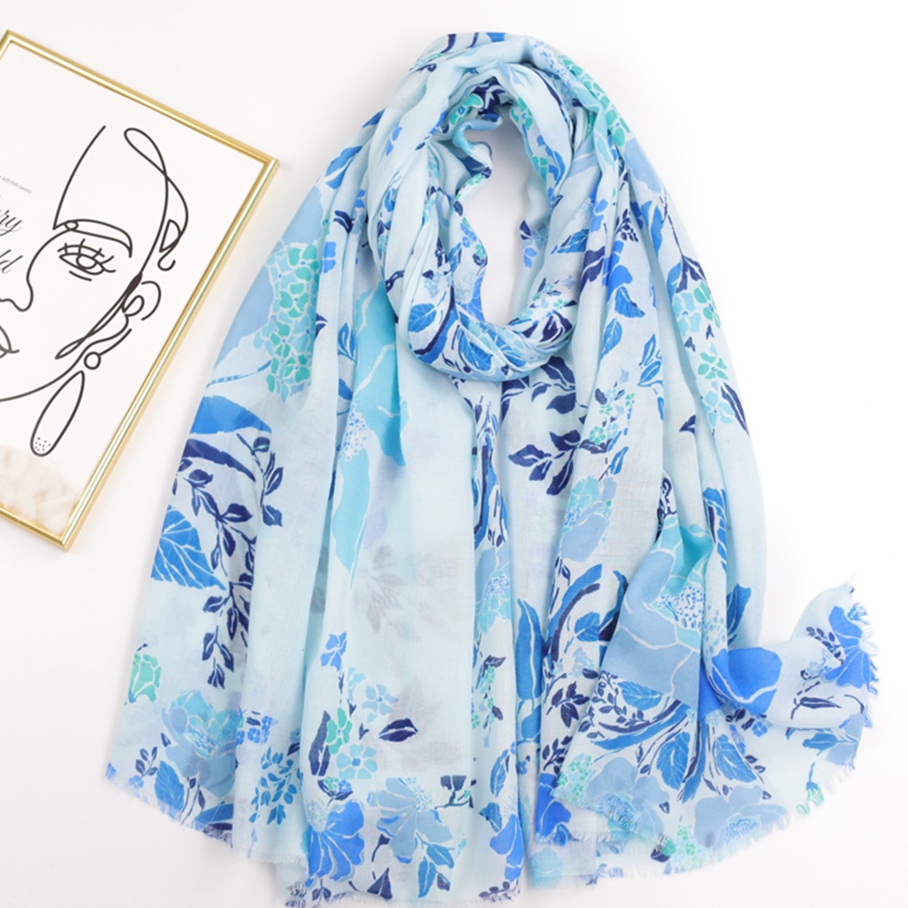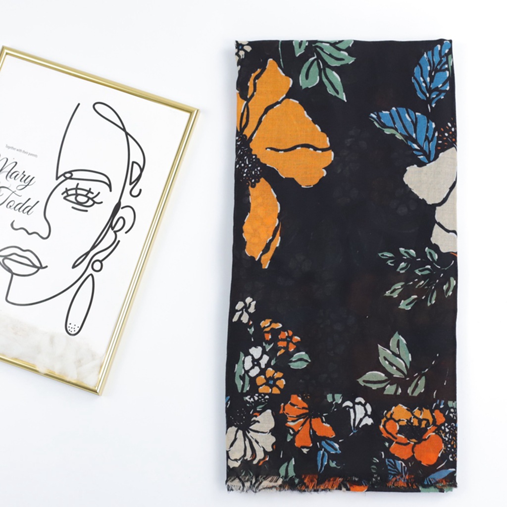 핫스탬핑 링샤오화 공장 직판 해외 무역 프린트 실크 스카프 새틴 코튼 부드러운 촉감 여성용 롱 스카프 봄 가을 얇은 스카프