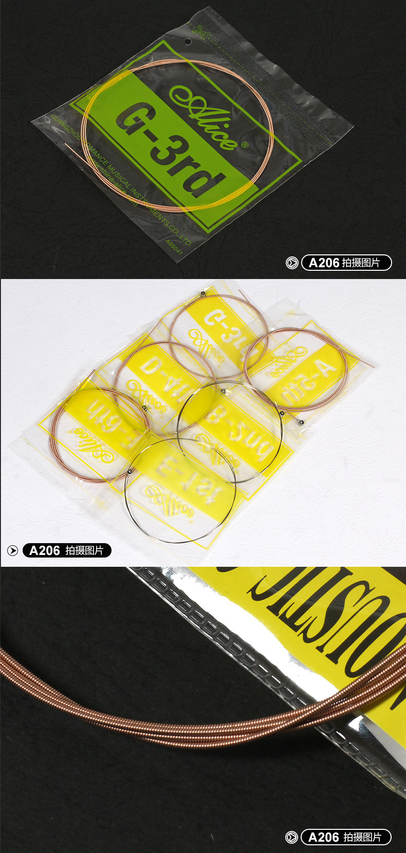 앨리스 기타 줄 A206 인광 브론즈 컬러 코팅 어쿠스틱 기타 1 현 벌크 1 개 2 개 3 개 4 현스토어 가기