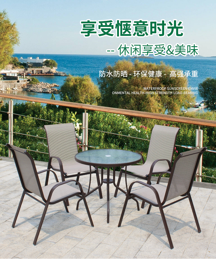 야외 상업 식당 테이블과 의자 조합 발코니 안뜰 메쉬 천 철 레저 가구 접이식 해변 힙 의자