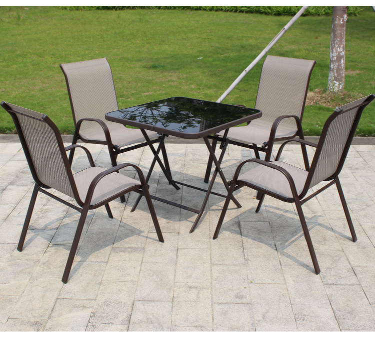 야외 상업 식당 테이블과 의자 조합 발코니 안뜰 메쉬 천 철 레저 가구 접이식 해변 힙 의자스토어 가기