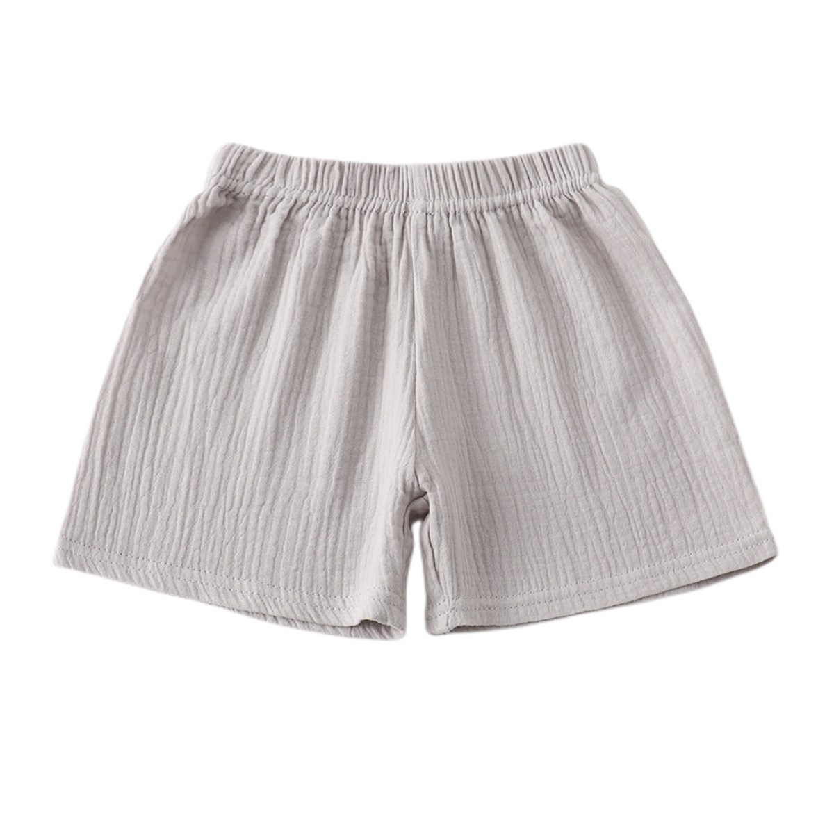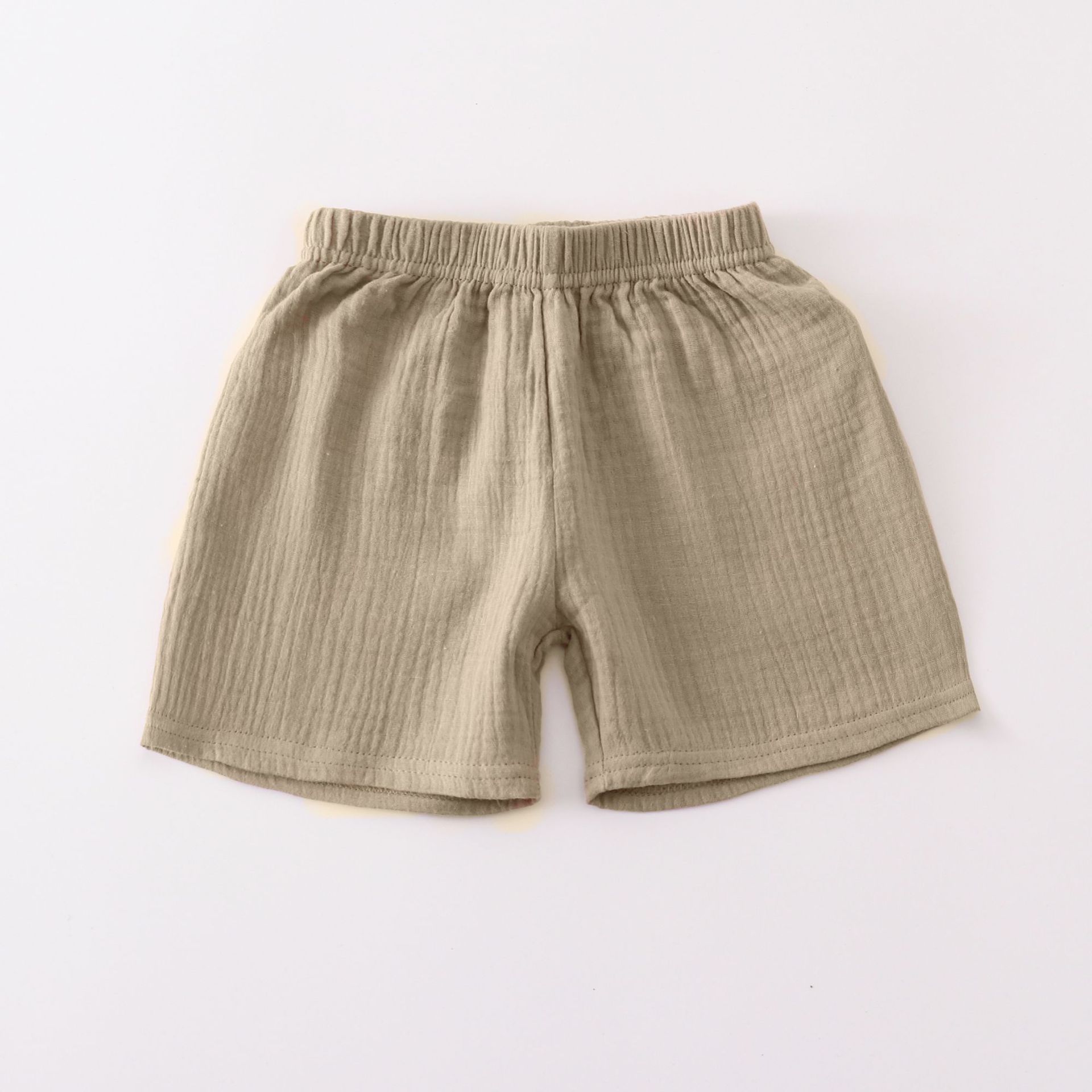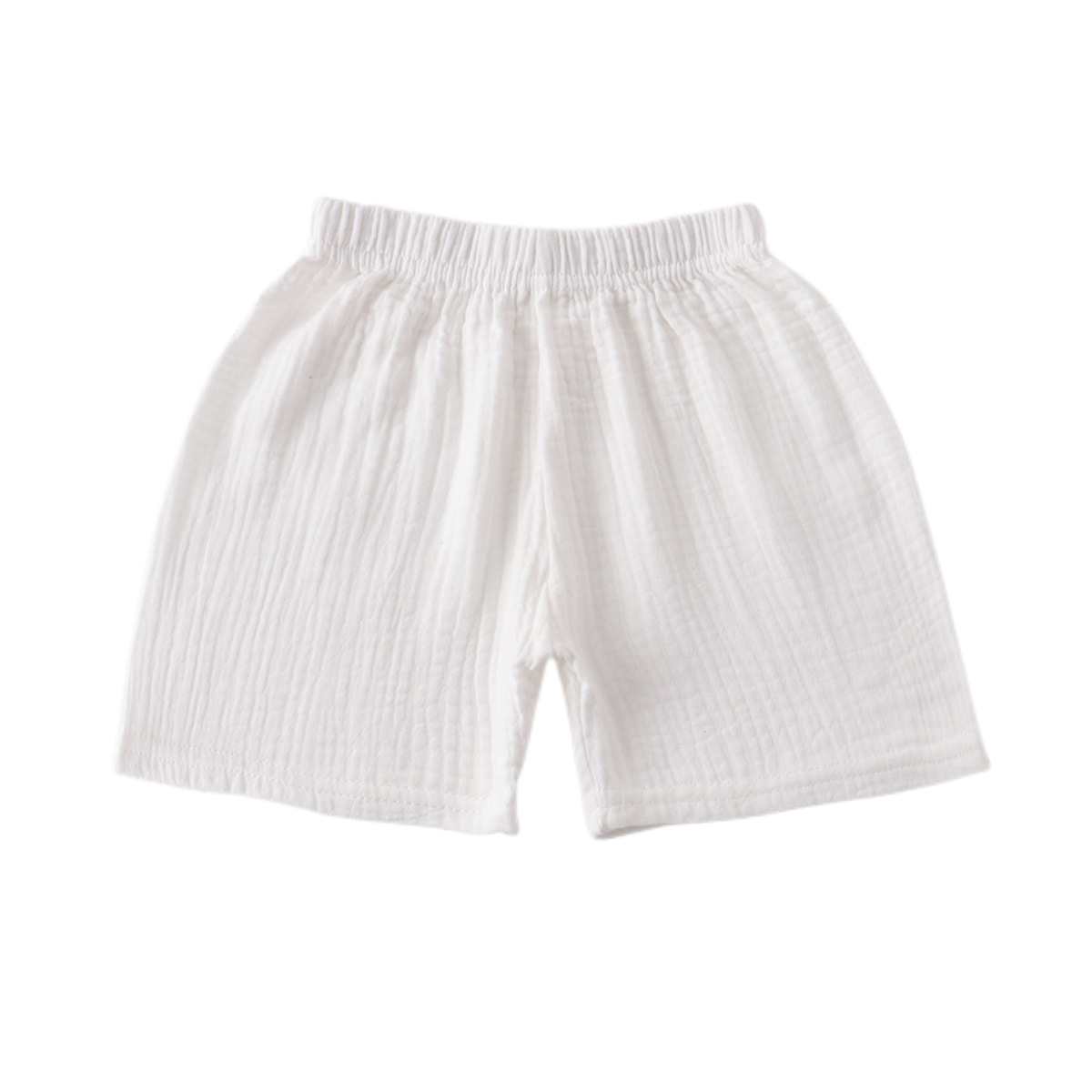 남성과 여성의 어린이 여름 면과 린넨 반바지 아기의 단색 더블 레이어 면 거즈 느슨한 스포츠 바지 2023 새로운 어린이 바지스토어 가기