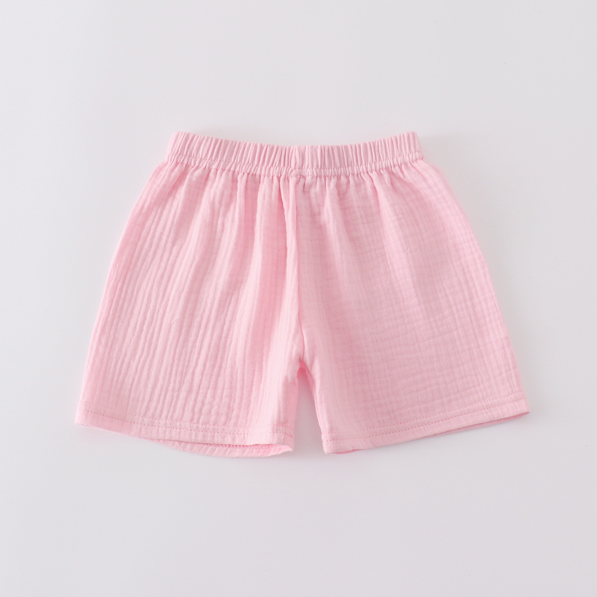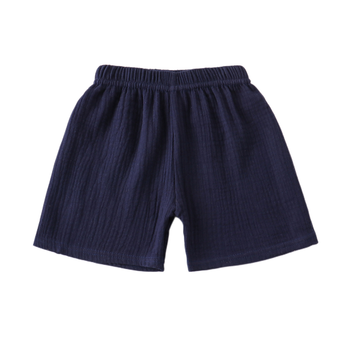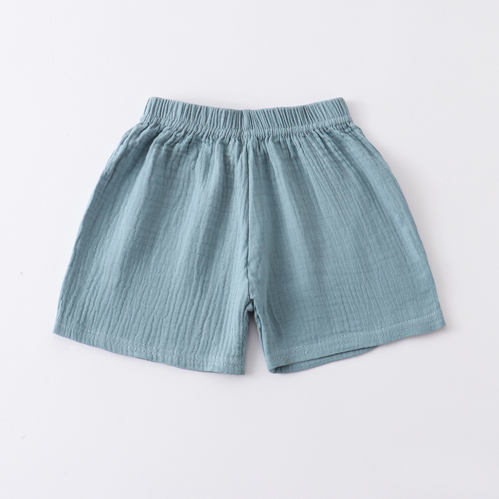 남성과 여성의 어린이 여름 면과 린넨 반바지 아기의 단색 더블 레이어 면 거즈 느슨한 스포츠 바지 2023 새로운 어린이 바지스토어 가기