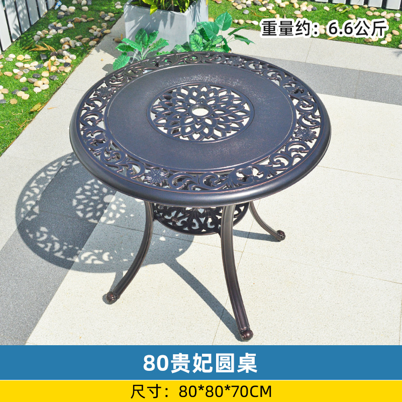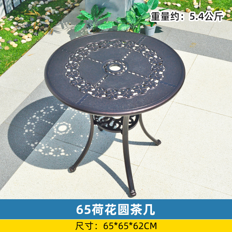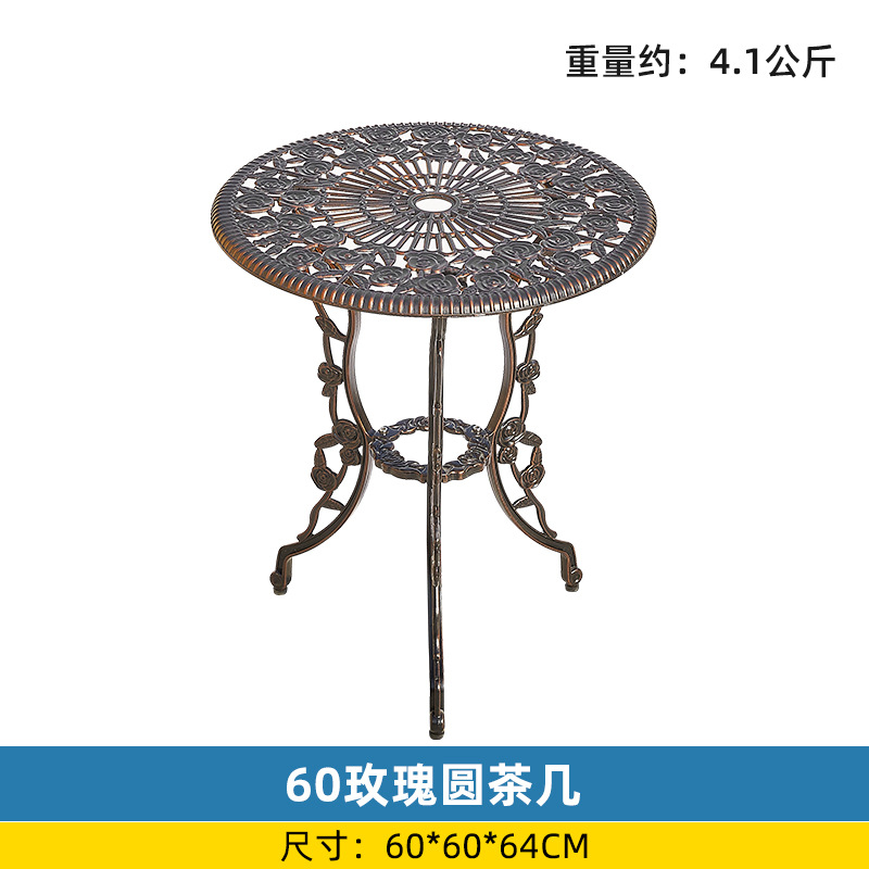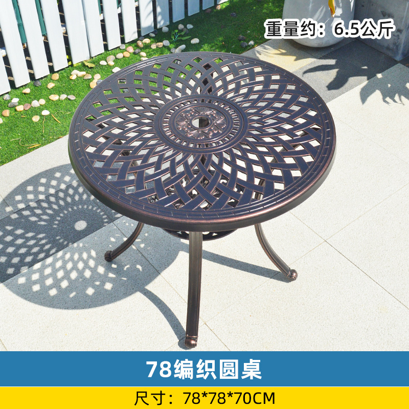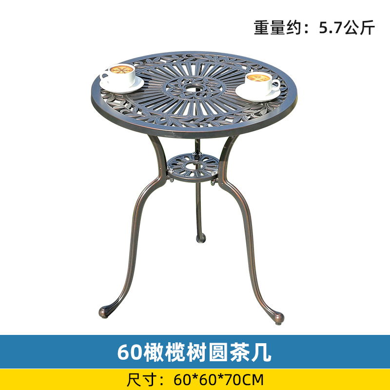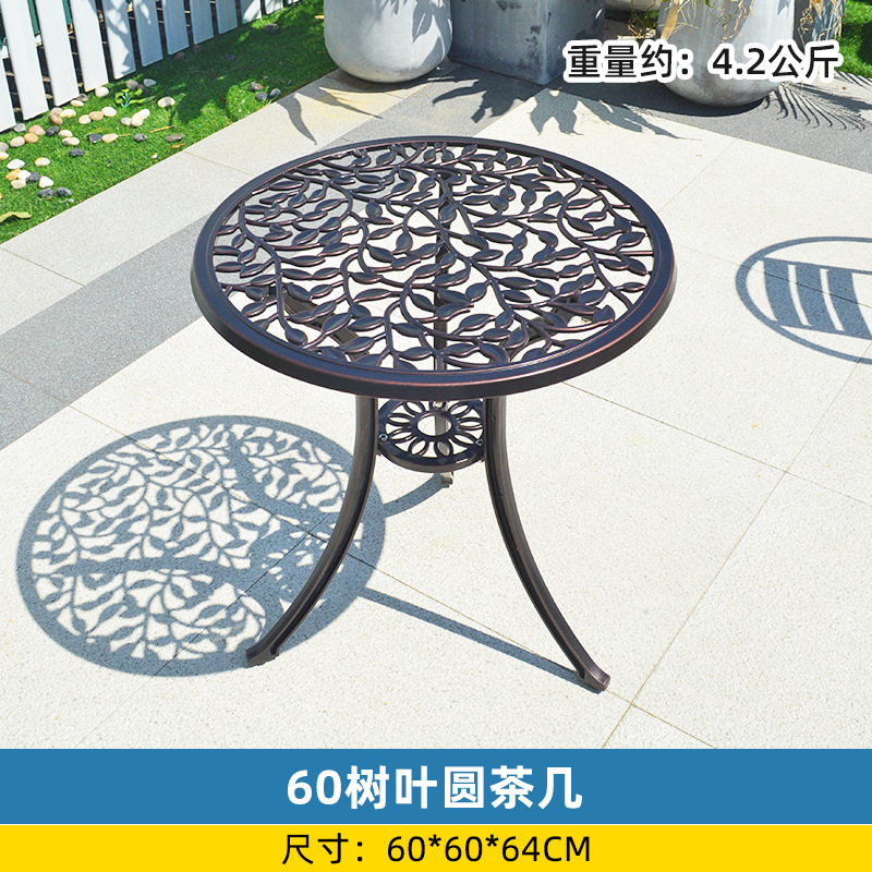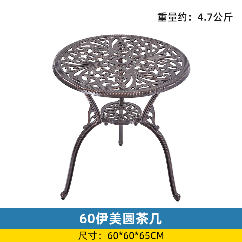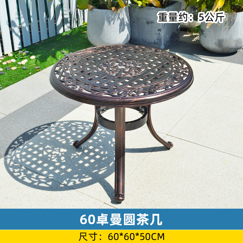 야외 싱글 식탁 캐스트 알루미늄 방수 선 스크린 소형 발코니 안뜰 노출 원형 테이블 야외 정원 단철 레저 테이블과 의자