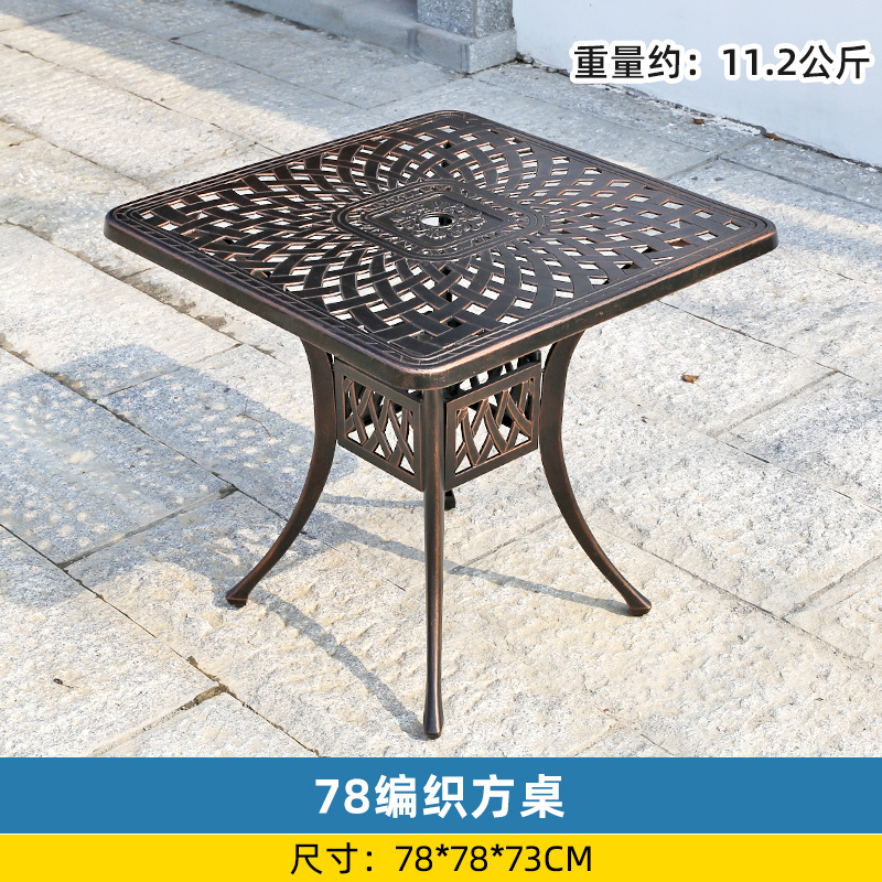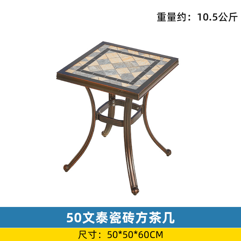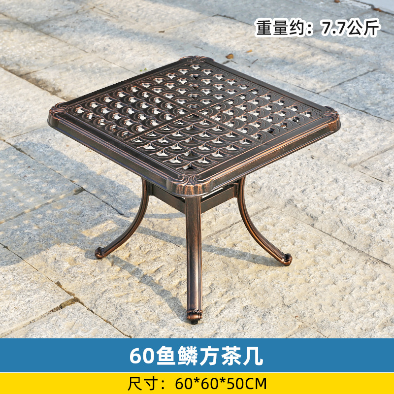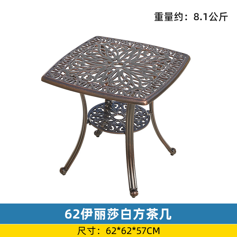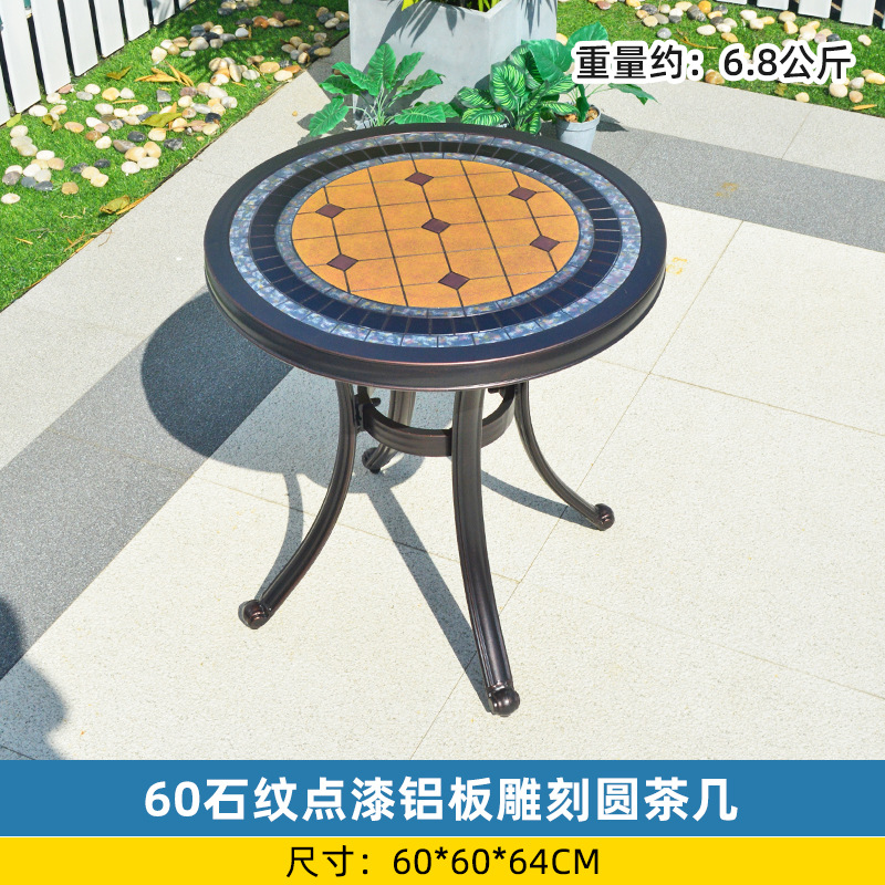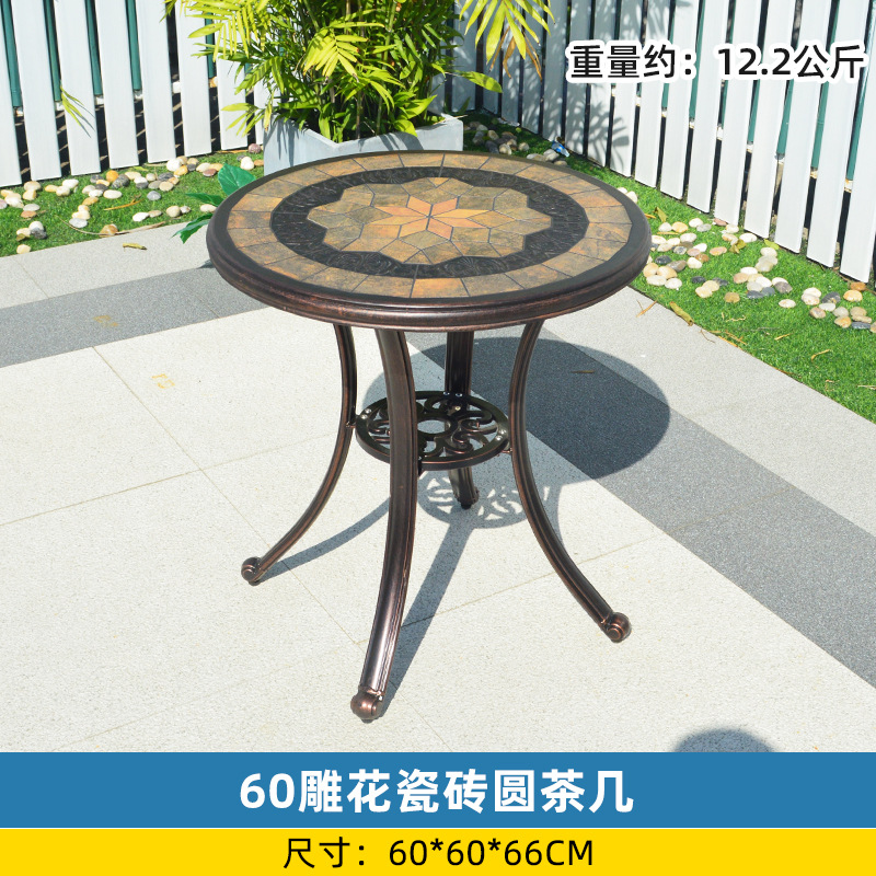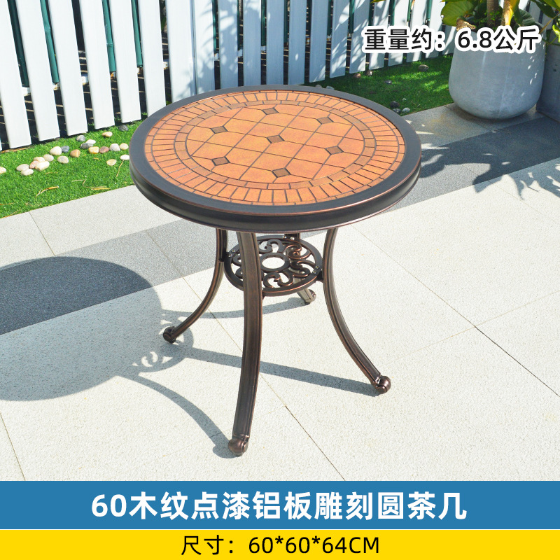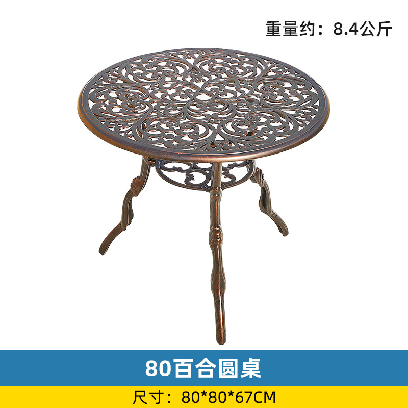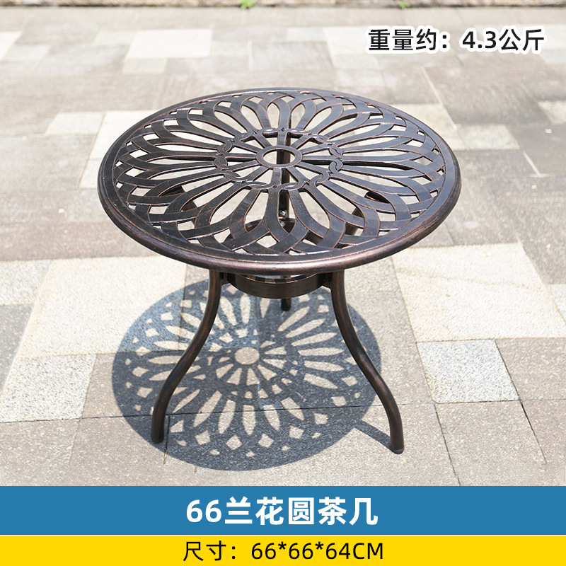 야외 싱글 식탁 캐스트 알루미늄 방수 선 스크린 소형 발코니 안뜰 노출 원형 테이블 야외 정원 단철 레저 테이블과 의자