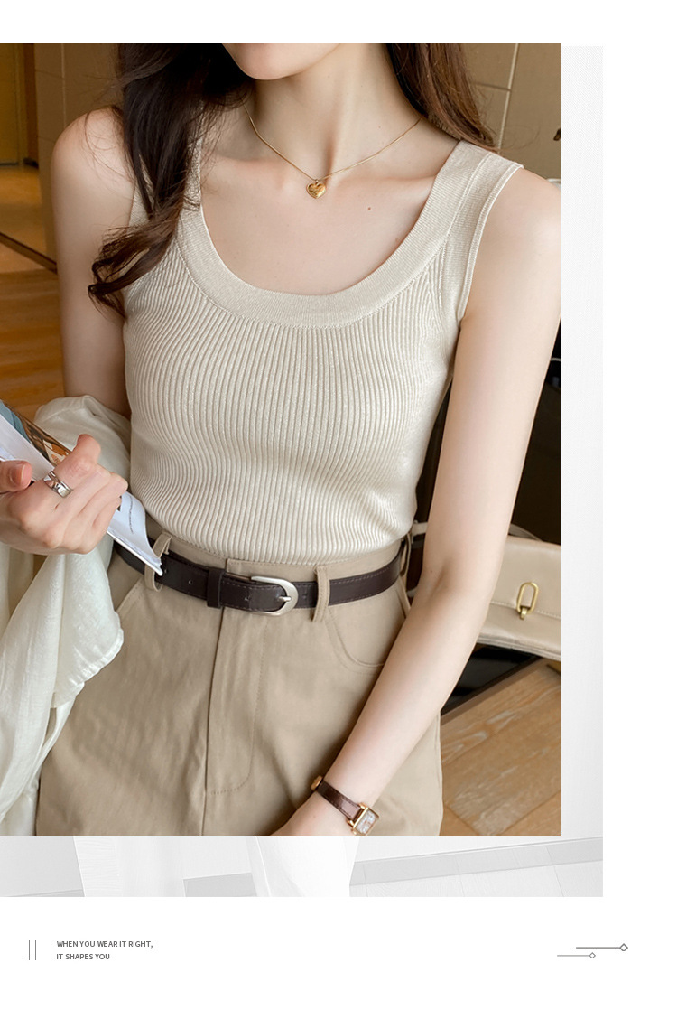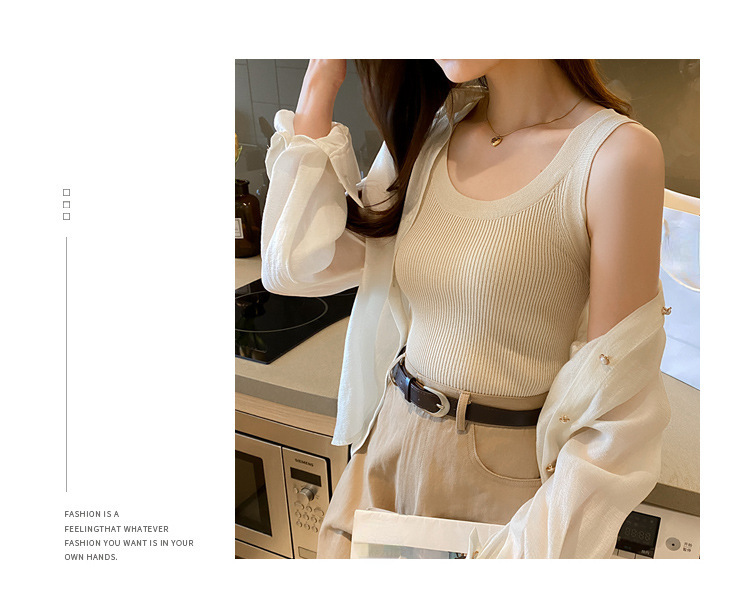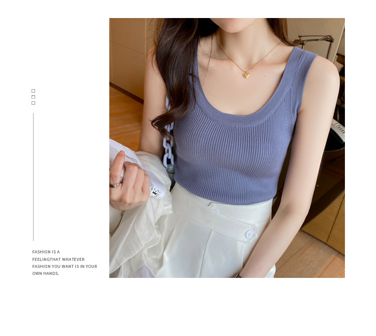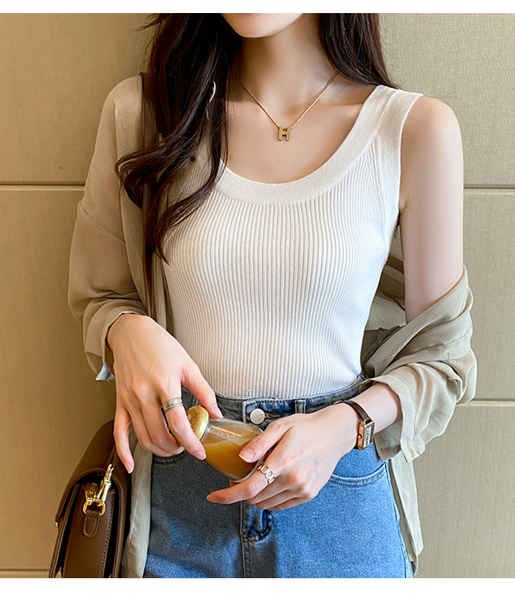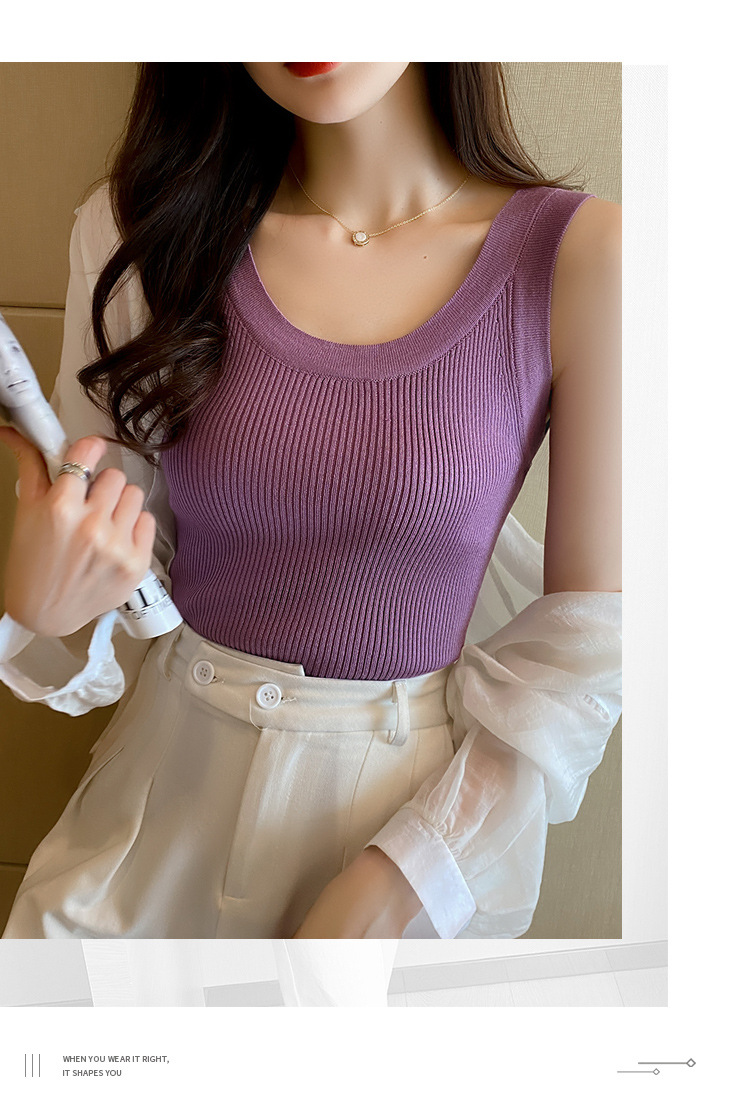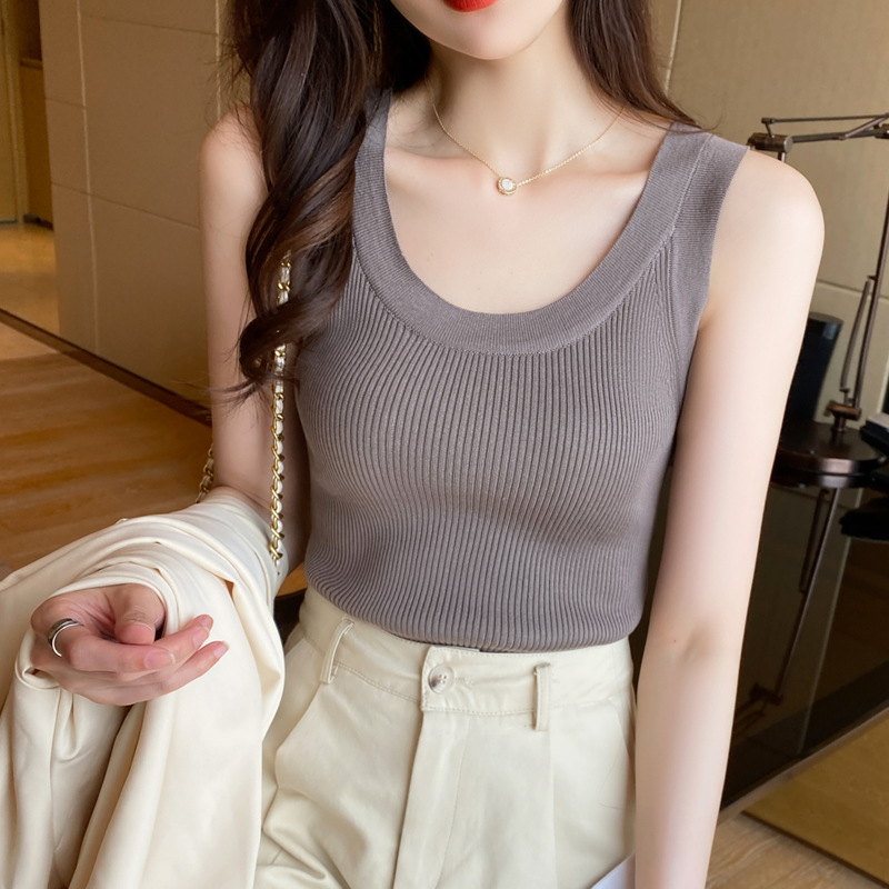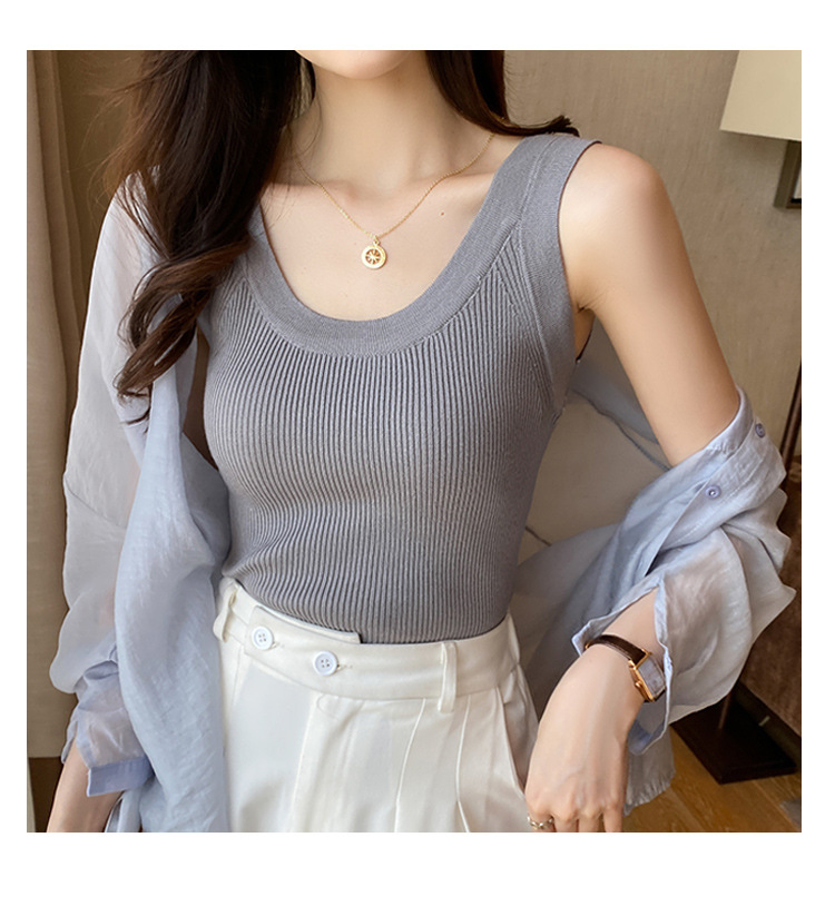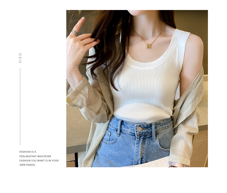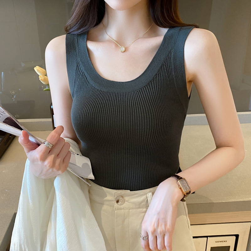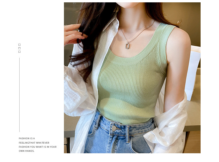 여성용 캐미솔 여름 신상품 이너웨어 아우터 착용 한국식 올매치 베이스 슬리밍 디자인 센스 틈새 솔리드 컬러 민소매스토어 가기