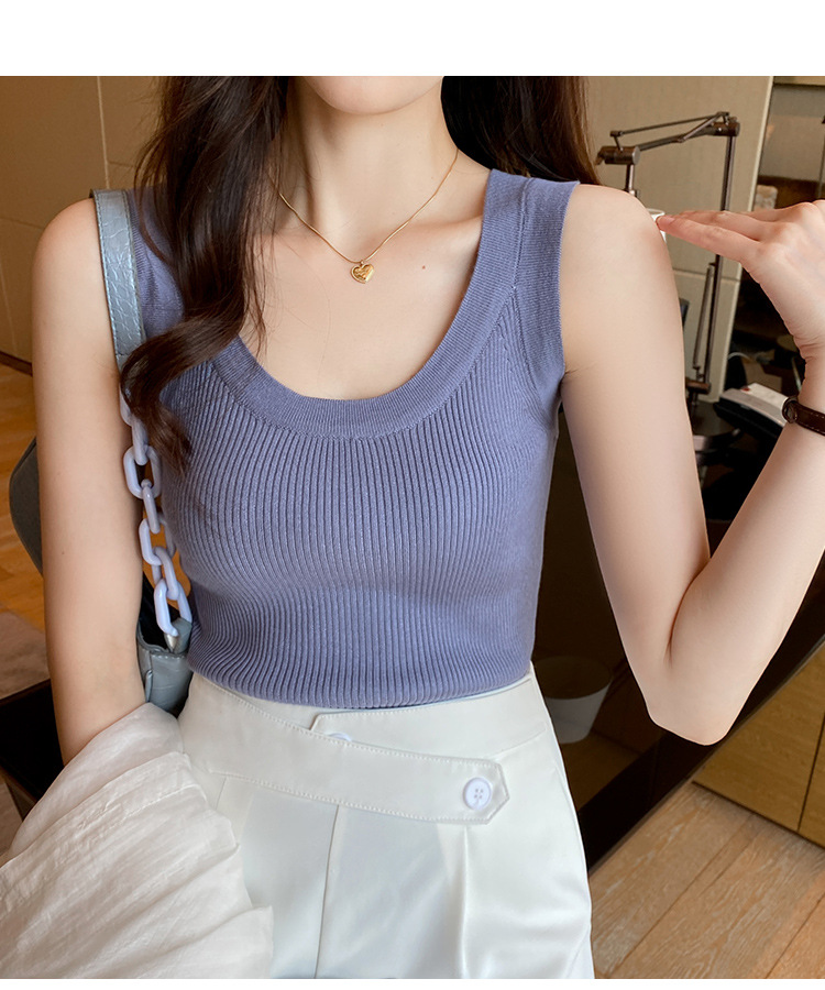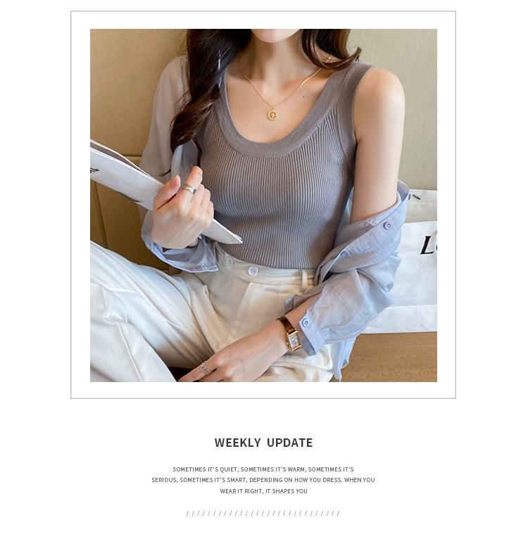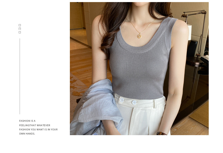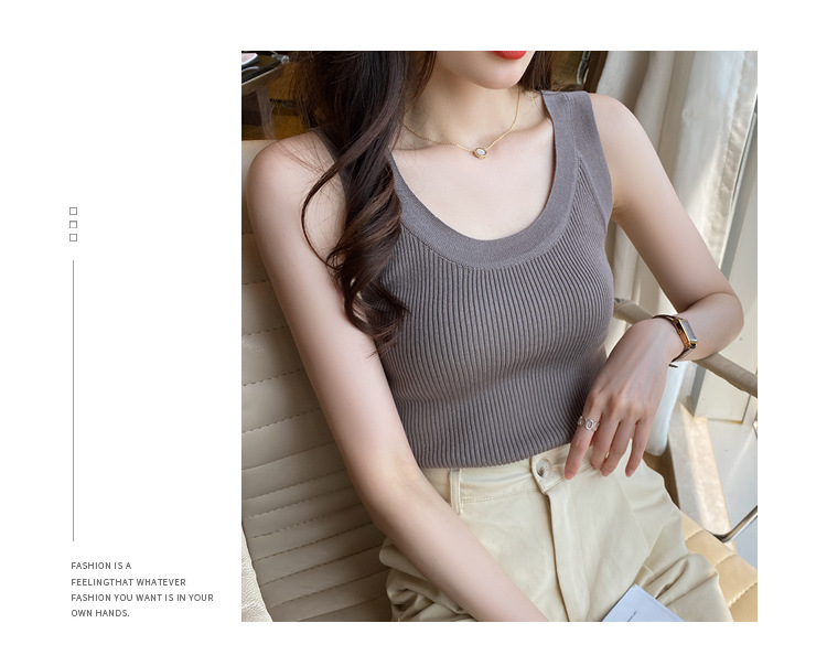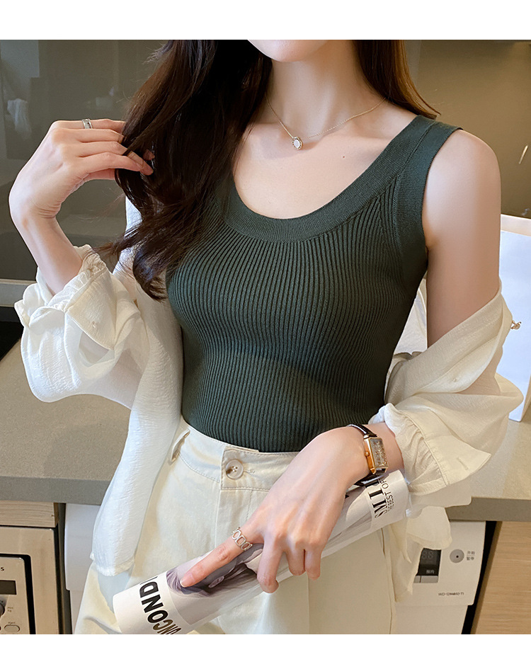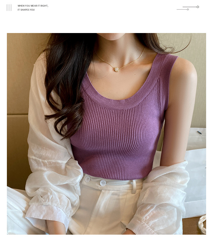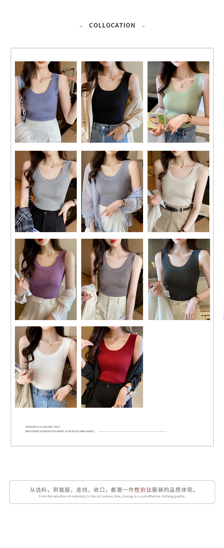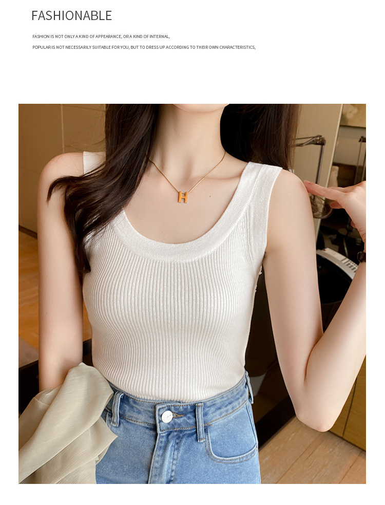여성용 캐미솔 여름 신상품 이너웨어 아우터 착용 한국식 올매치 베이스 슬리밍 디자인 센스 틈새 솔리드 컬러 민소매스토어 가기