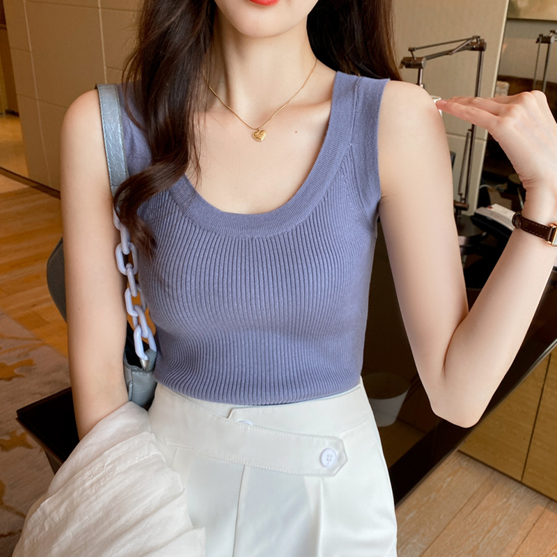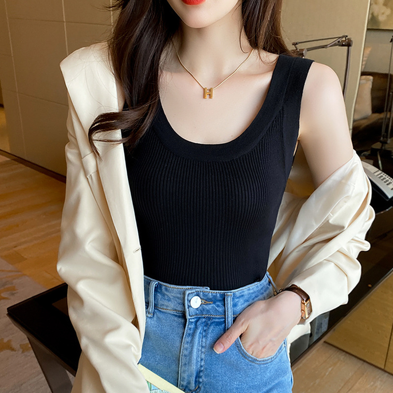 여성용 캐미솔 여름 신상품 이너웨어 아우터 착용 한국식 올매치 베이스 슬리밍 디자인 센스 틈새 솔리드 컬러 민소매