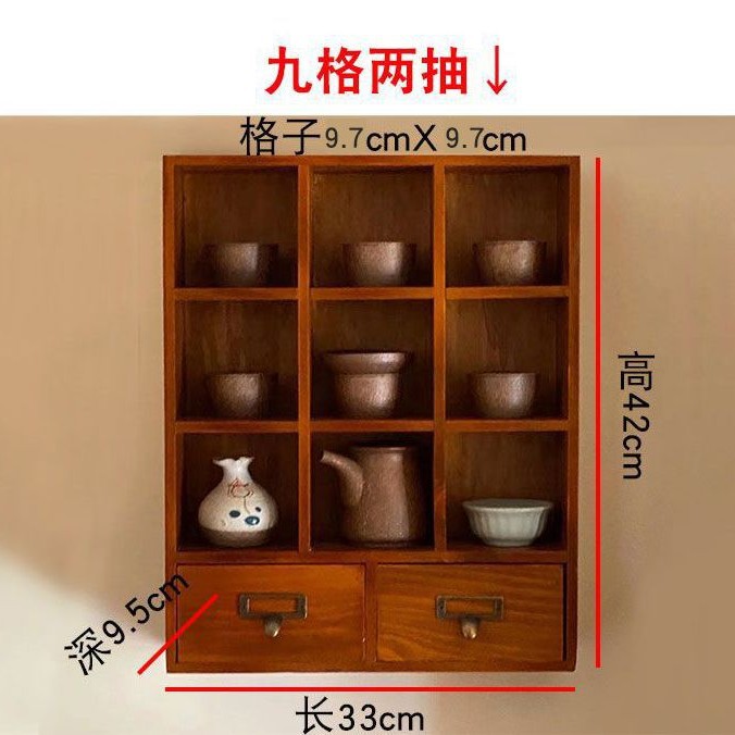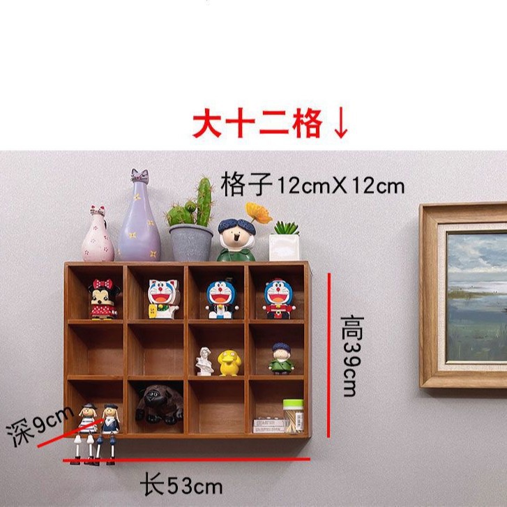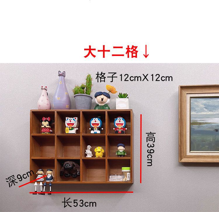 빈티지 벽걸이 벽 스토리지 랙 나무 12 궁전 격자 데스크탑 골동품 랙 장식품 블라인드 박스 스토리지 랙 zakka스토어 가기