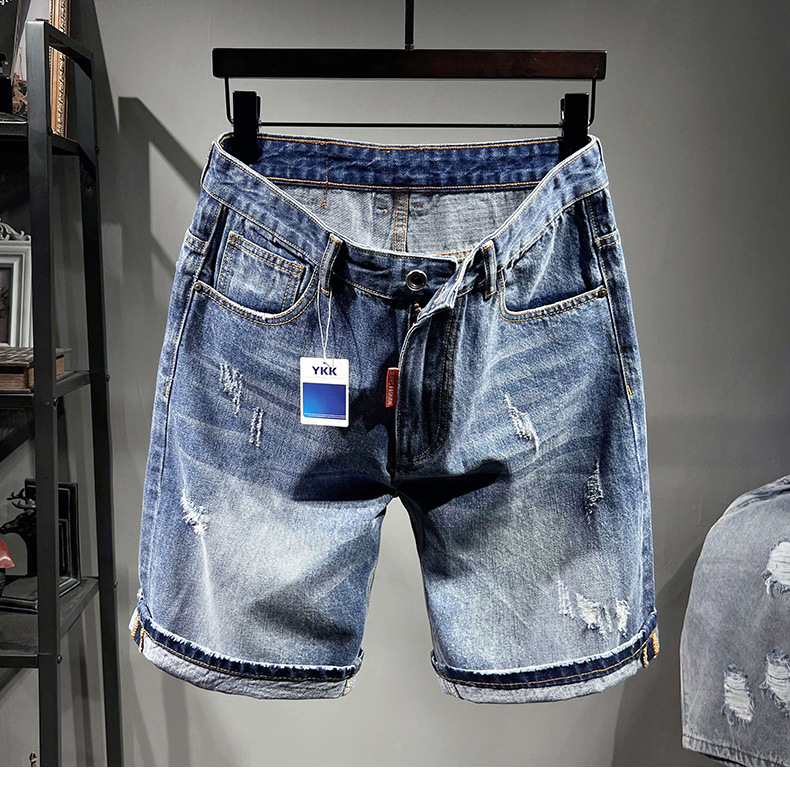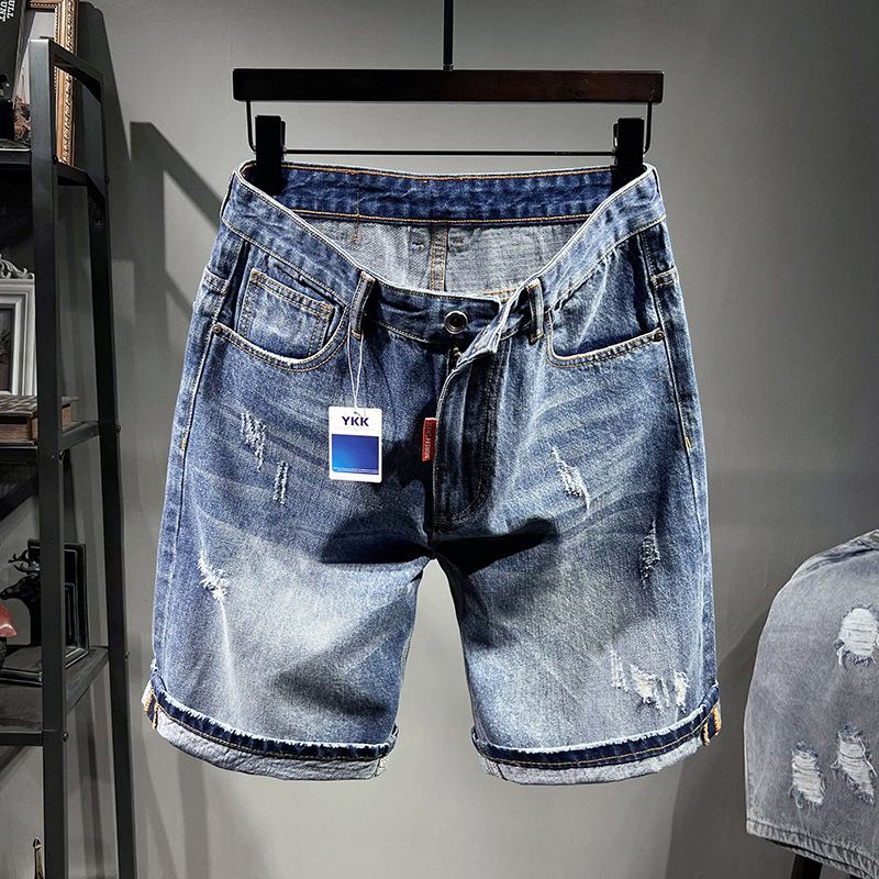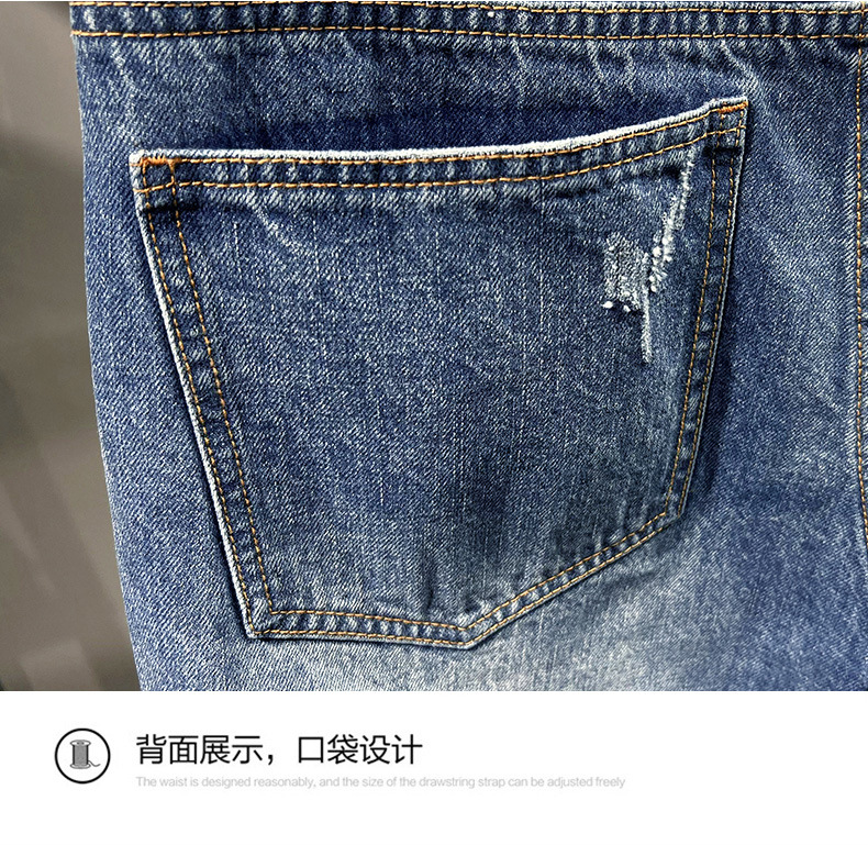 5502 | 플러스 사이즈 남자의 여름 새로운 데님 반바지 남자의 간단한 느슨한 플러스 비료 증가 면 5 점 바지스토어 가기