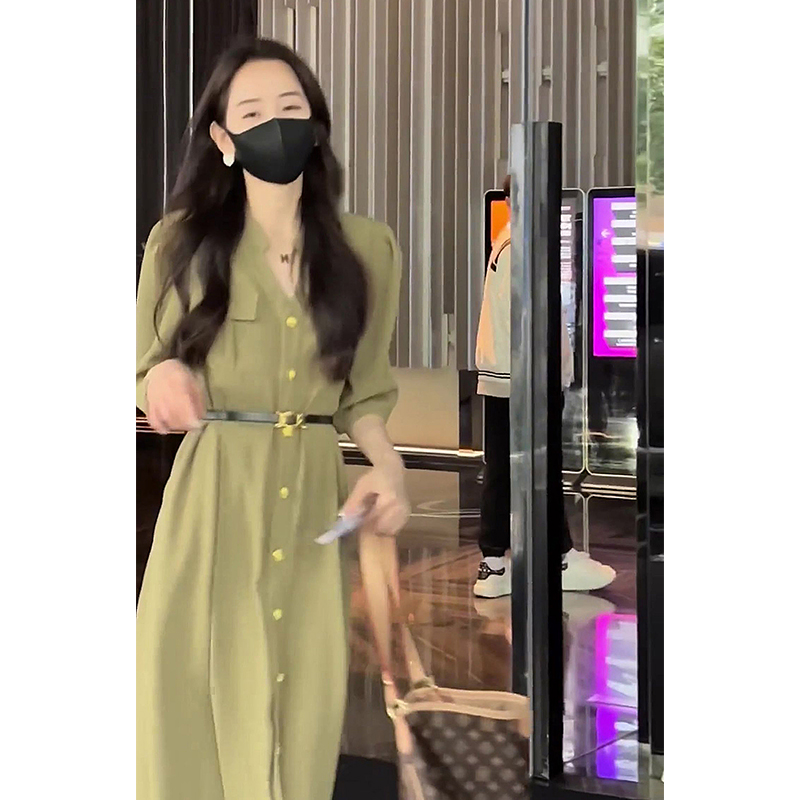 YT33896 프랑스 스타일의 고급 멋진 스타일 세련된 우아한 서양식 슬림 핏 그린 셔츠 원피스