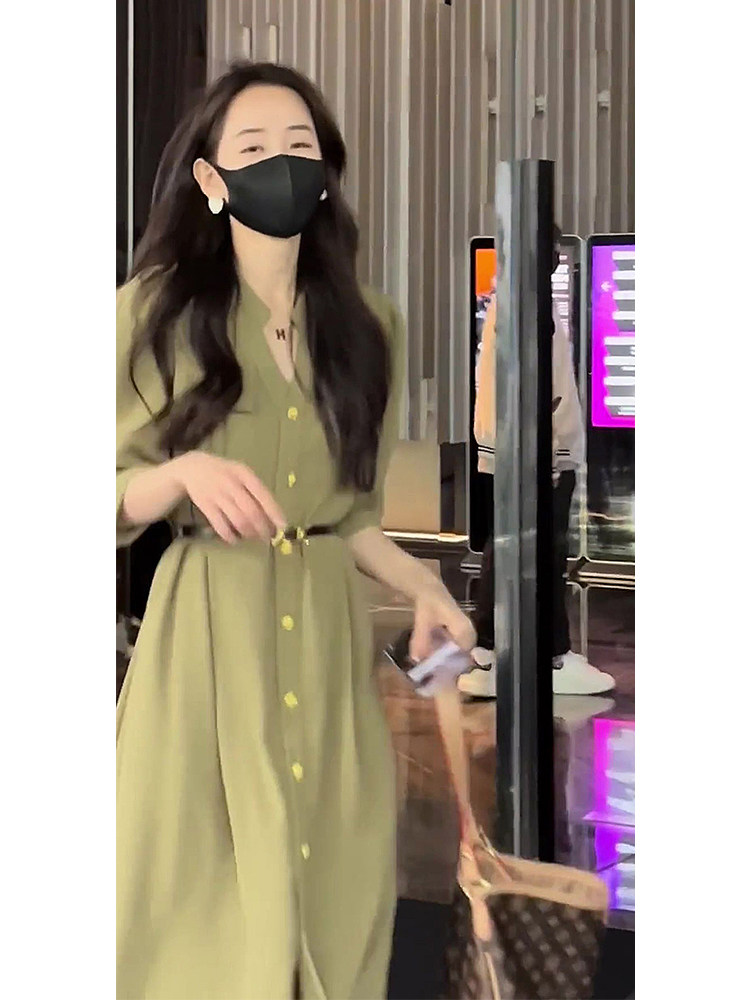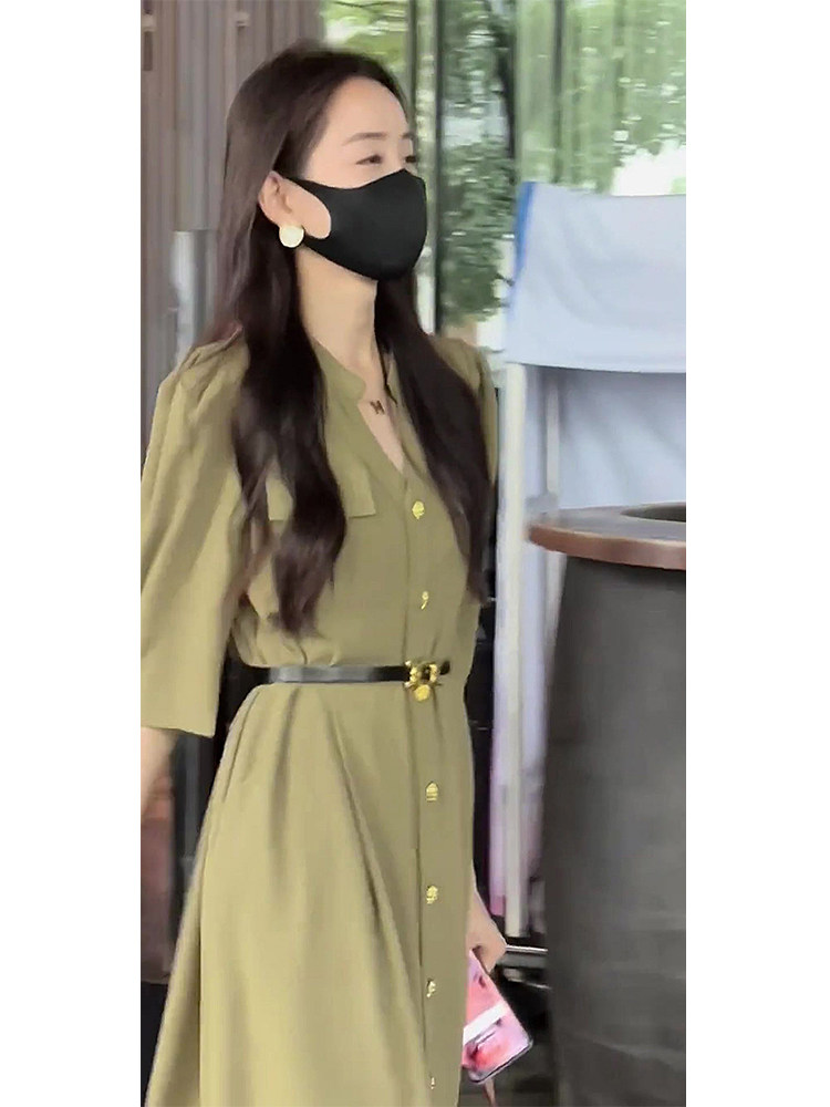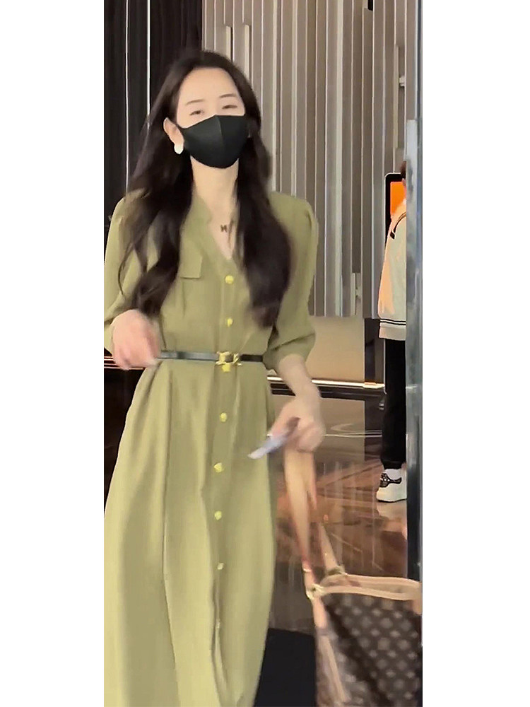 YT33896 프랑스 스타일의 고급 멋진 스타일 세련된 우아한 서양식 슬림 핏 그린 셔츠 원피스스토어 가기