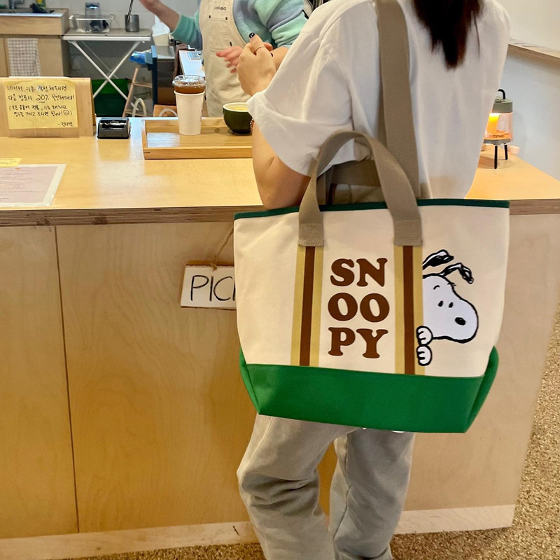 일본과 한국식 동대문 스누피 귀여운 캔버스 만화 숄더백 유행 모든 매치 컬러 매칭 핸드백스토어 가기