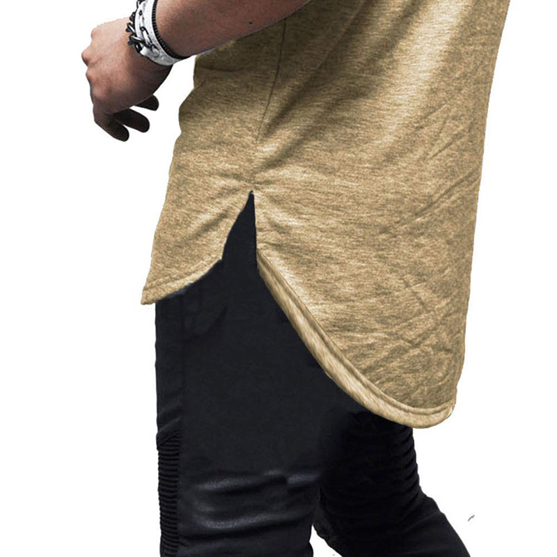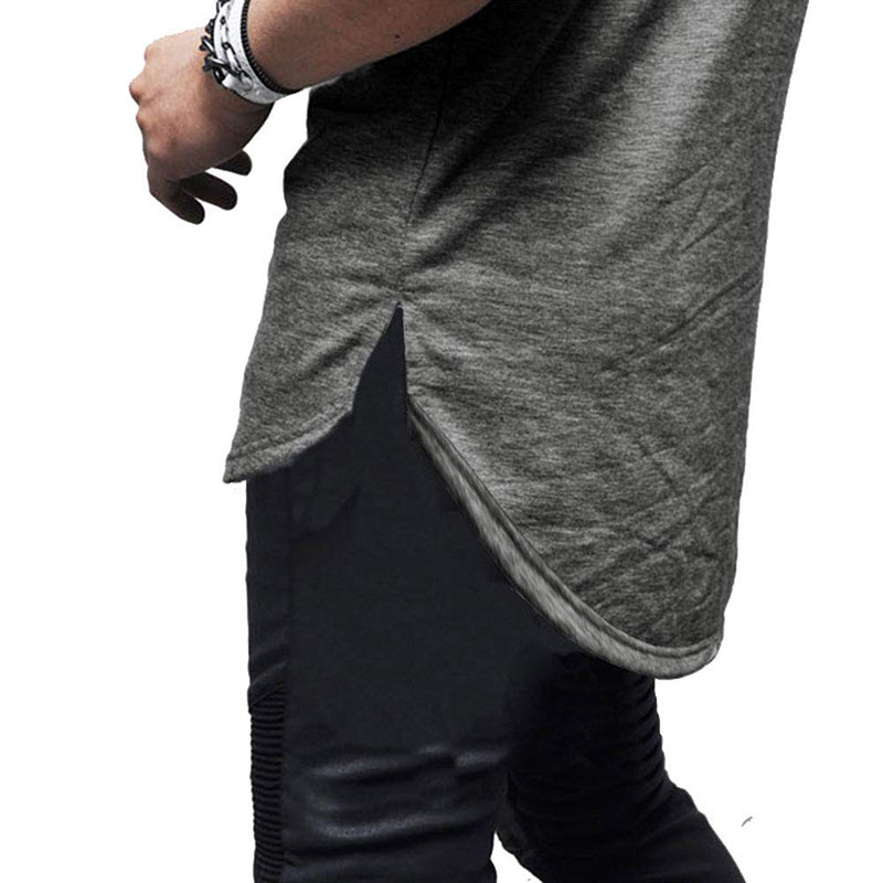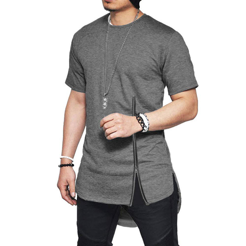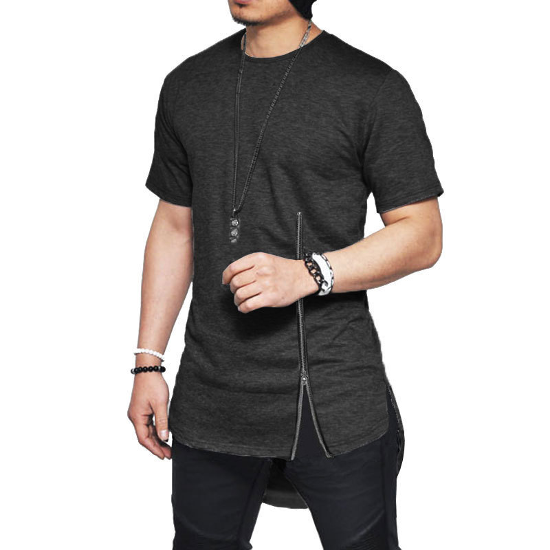 소원 남자의 가슴 지퍼 힙합 반팔 사이드 슬릿 아크 밑단 티셔츠 봄과 여름 단색 탑