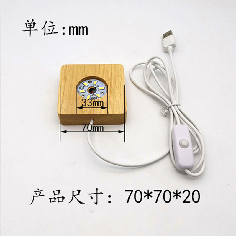 충전 검은 호두 색 단단한 나무 led 밤 빛 크리스탈 볼 나무 장식품 빛나는 기본 조명베이스