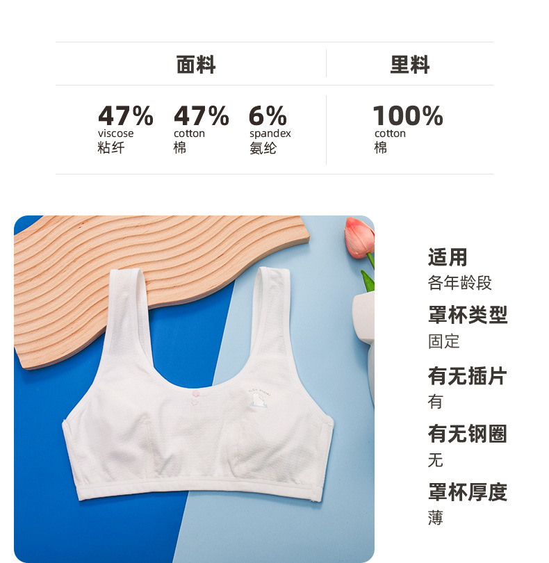 퀼트 안티 범프 소녀의 속옷 얇은 통기성 여아 개발 조끼 편안한 면 학생 브래지어