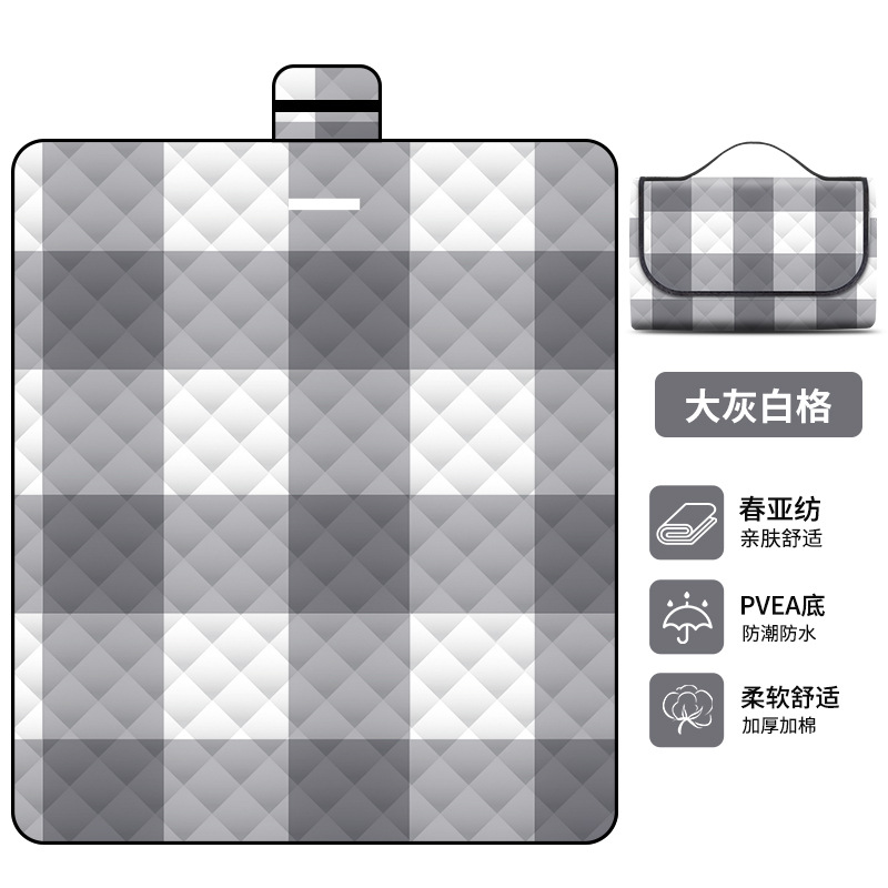 • 큰 회색 흰색 격자 초음파 피크닉 매트