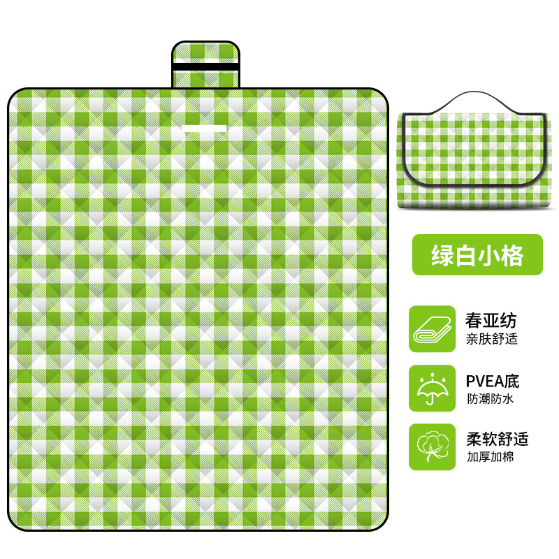 • 녹색과 흰색 격자 초음파 피크닉 매트