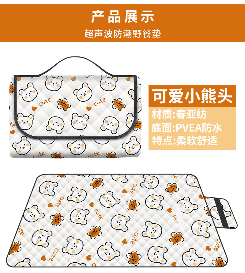 • 귀여운 곰 머리 초음파 피크닉 매트
