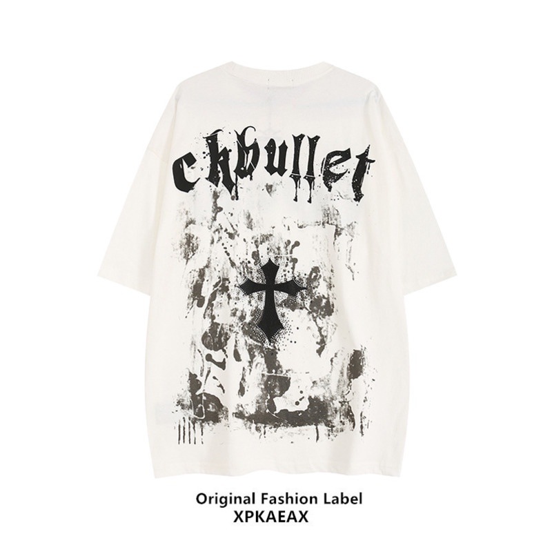 크로스 보더 아메리칸 레트로 하이 스트리트 트렌디 크로스 반팔 남성 캐주얼 플러스 사이즈 인 반팔 티셔츠 커플 남성과 여성 탑스토어 가기