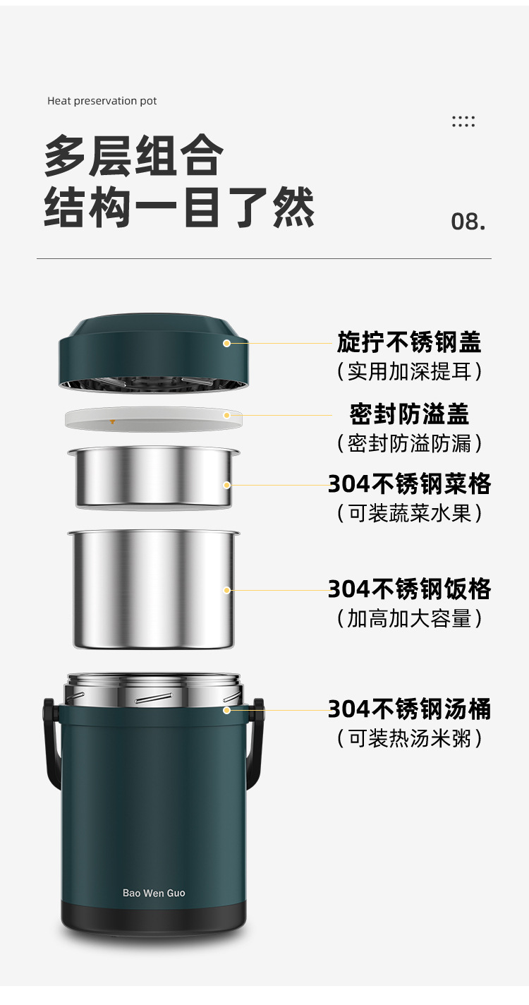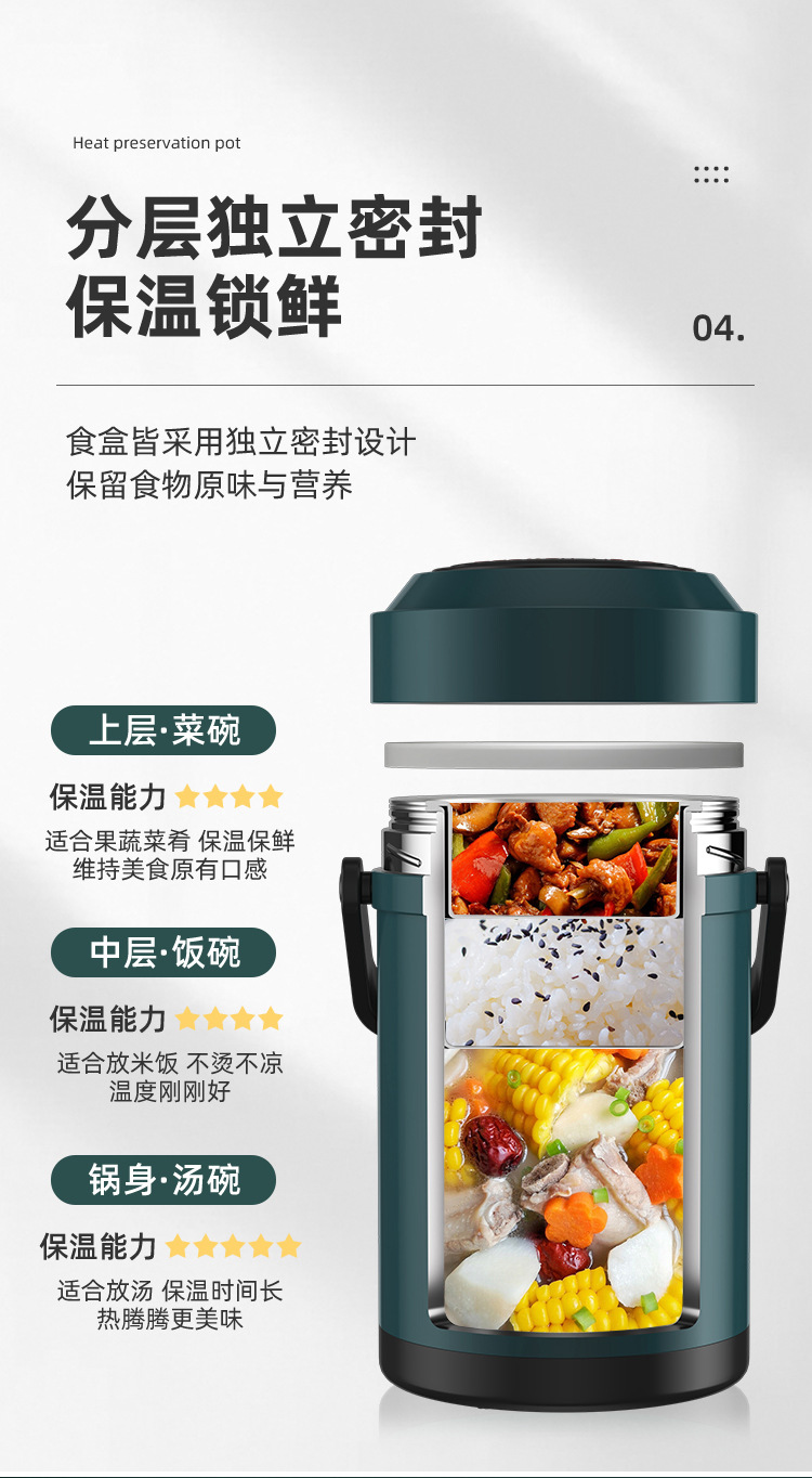 304 스테인레스 스틸 진공 단열 도시락 사무실 직원 휴대용 다층 휴대용 냄비 대용량 밀폐 도시락