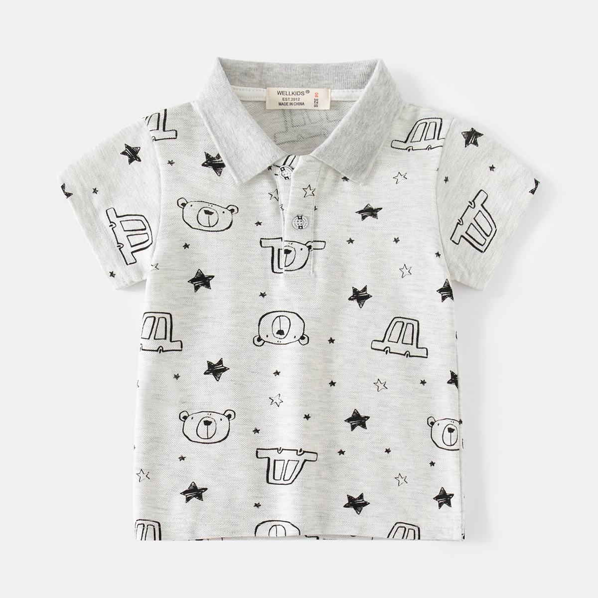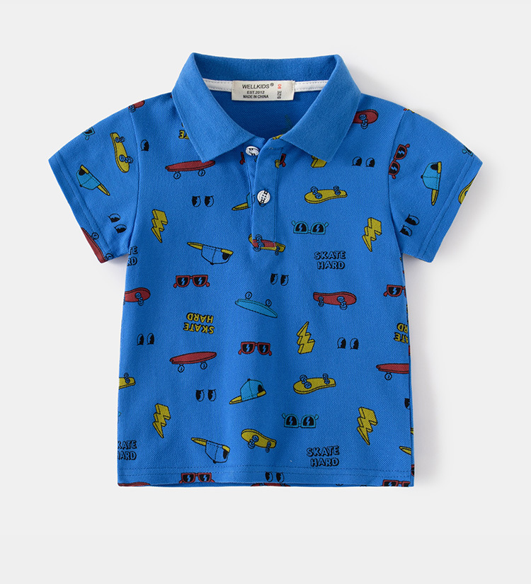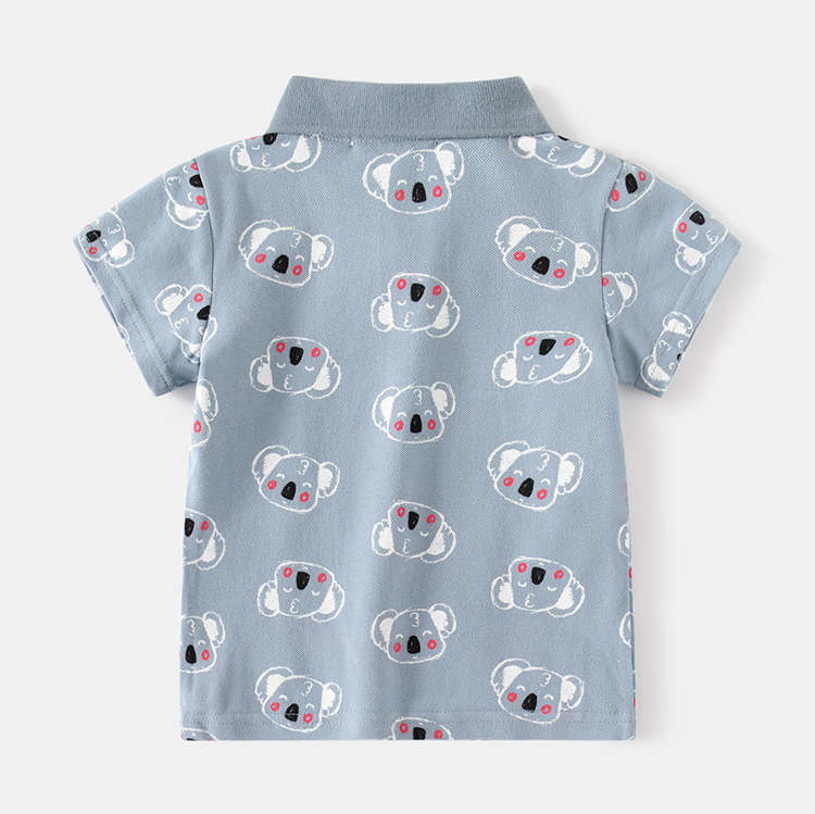 2023 새로운 공룡 패턴 소년 반팔 폴로 셔츠 안개 블루 귀여운 라르 어린이 반팔 폴로 셔츠스토어 가기