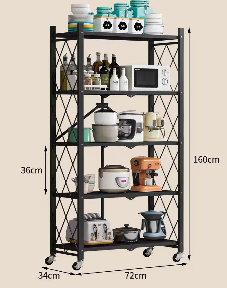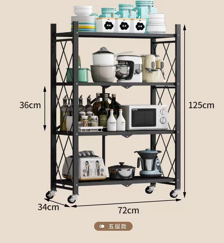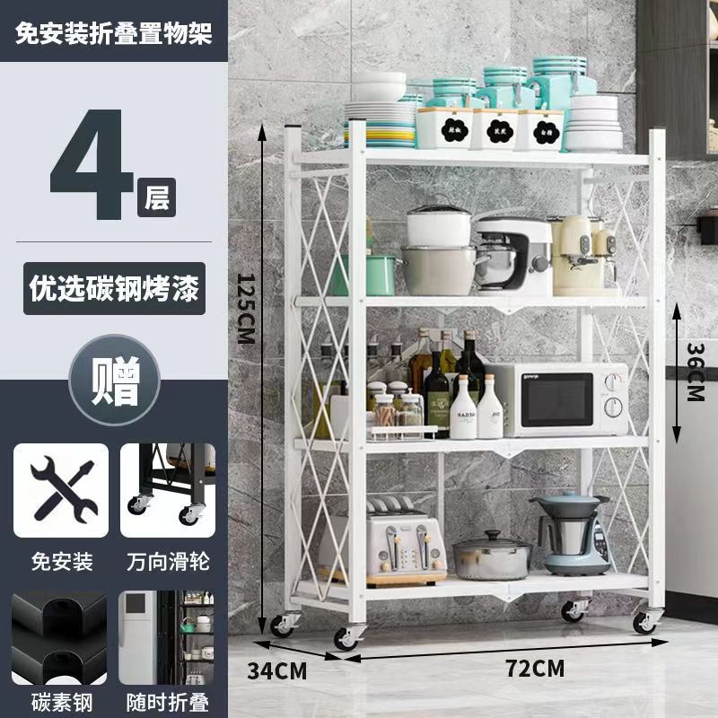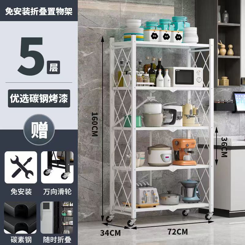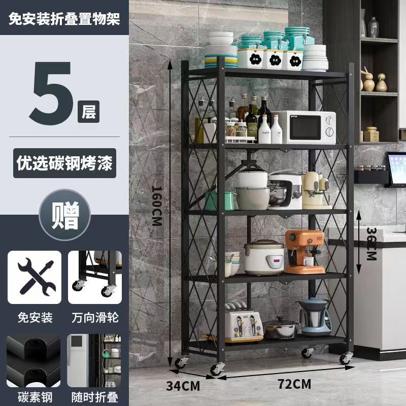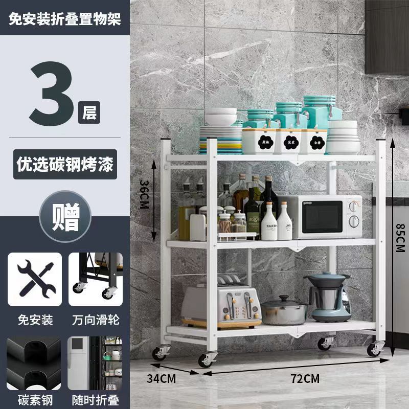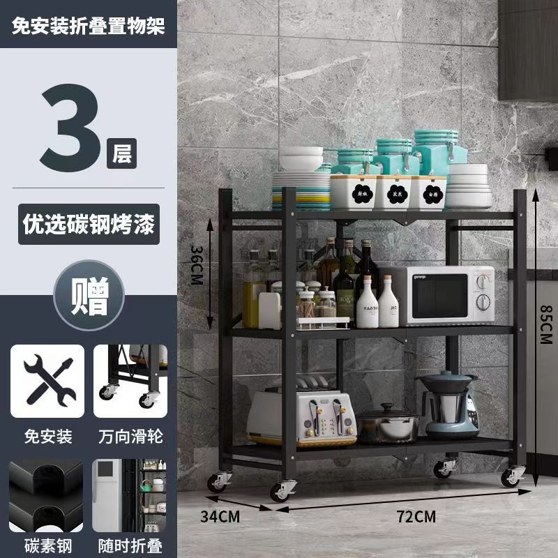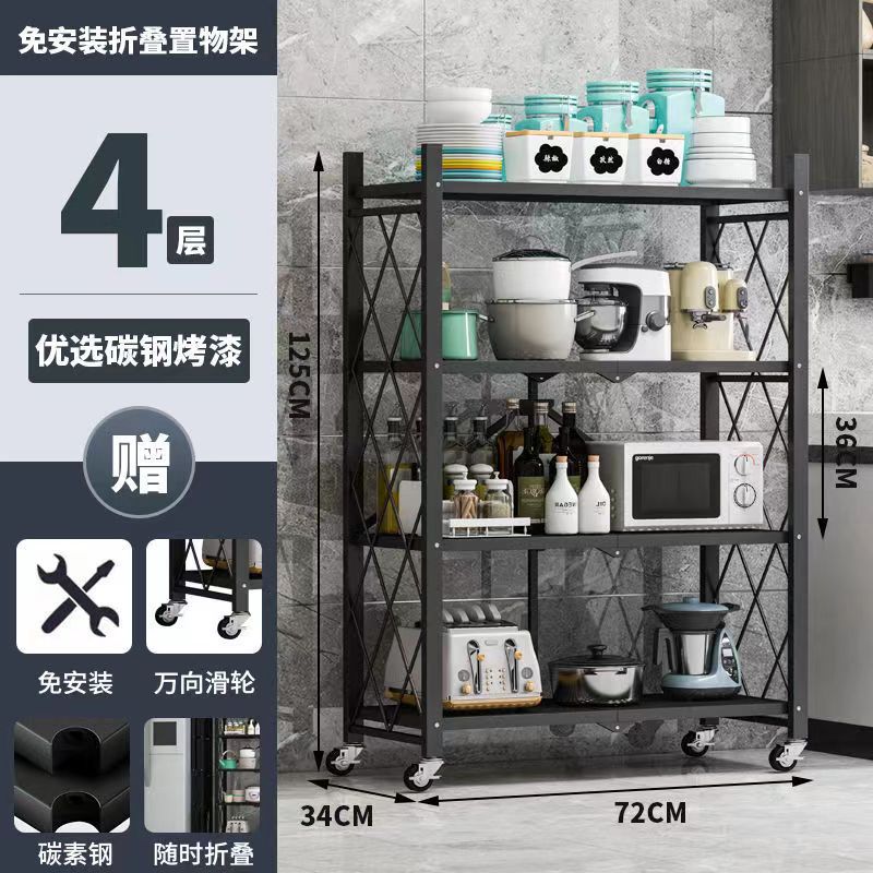다층 접이식 수납 선반 주방 무설치 탄소강 전자레인지 선반 가정용 바닥형 수납 선반 신발장 대형 접이식