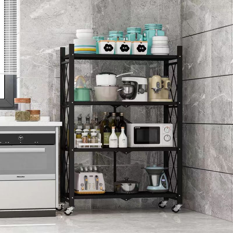 다층 접이식 수납 선반 주방 무설치 탄소강 전자레인지 선반 가정용 바닥형 수납 선반 신발장 대형 접이식스토어 가기