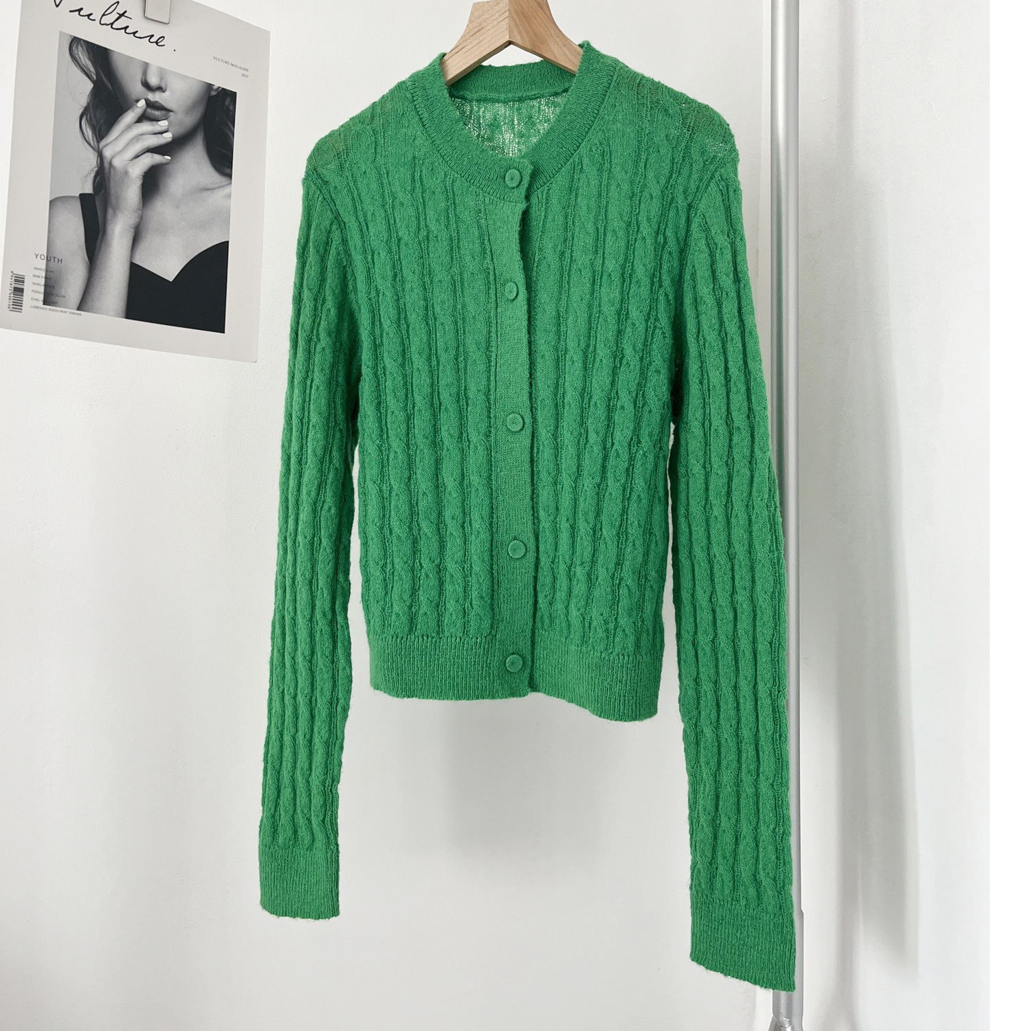 재고 있음 CS 스타일 여성용 모헤어 혼방 꼬임 니트 가디건 녹색 봄 신상품 1148241002스토어 가기
