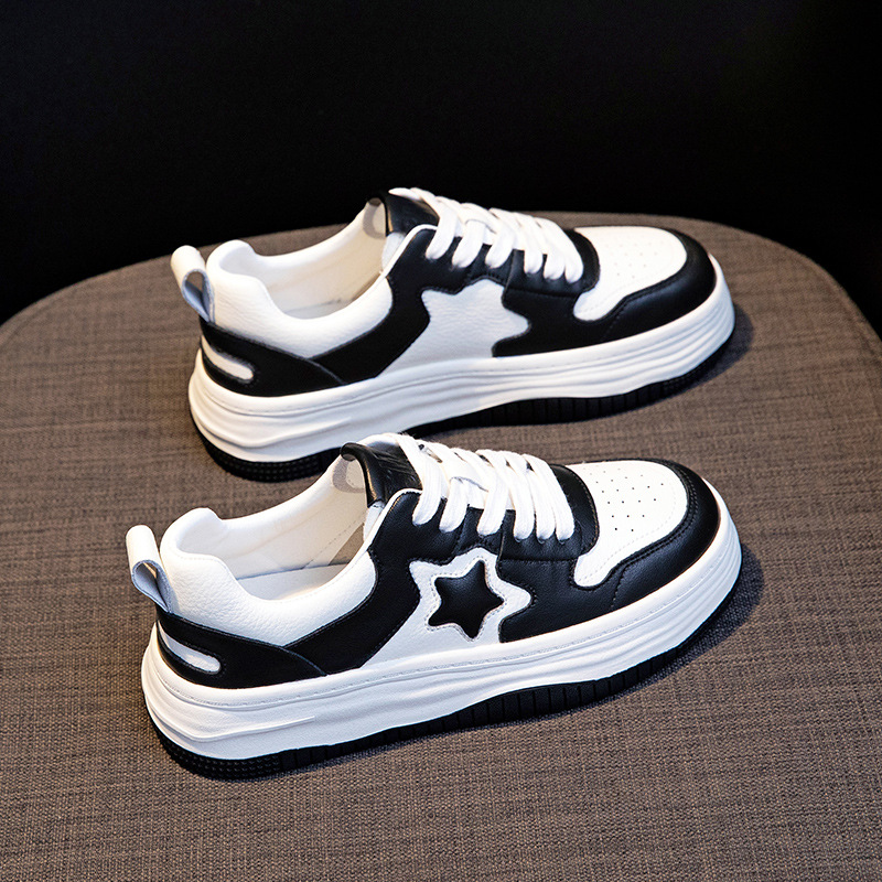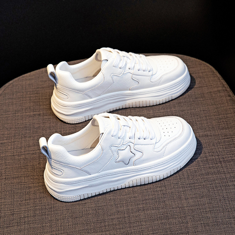 스타 화이트 슈즈 여성용 천연 가죽 2025년 신상 봄 경량 스포츠 캐주얼 슈즈 플랫 학생용 패션 한국 스타일 신발스토어 가기