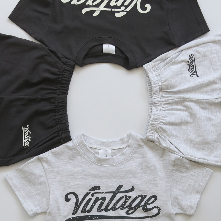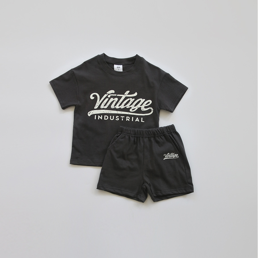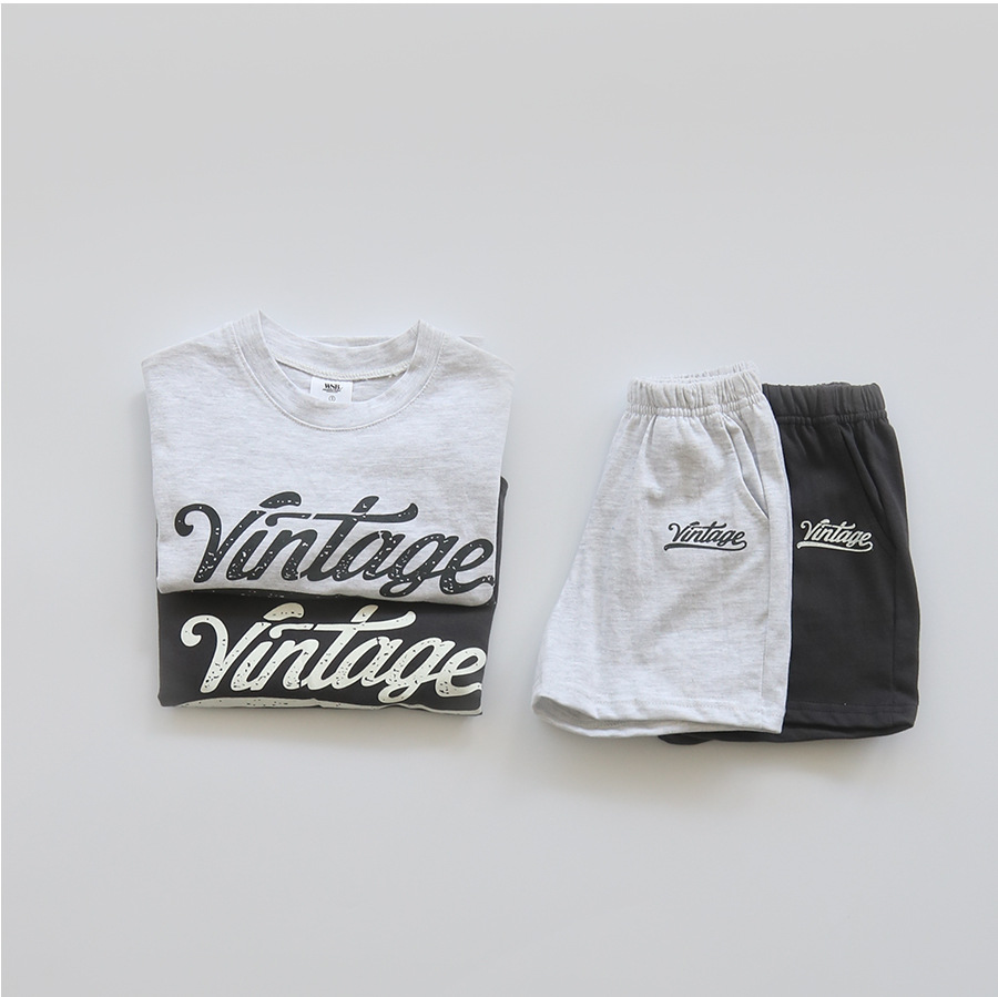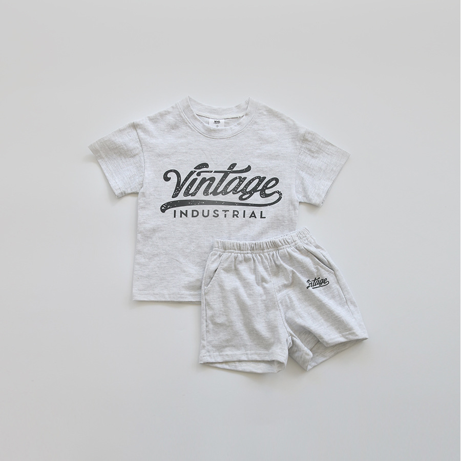 2023 여름 한국 스타일의 아기 소년과 소녀 스포츠 레저 세트 아기 서양 스타일 면 편지 세트스토어 가기