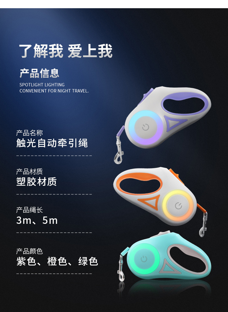 새로운 LED 발광 개 목줄 애완 동물 목줄 자동 개폐식 개 산책 목줄 개 목줄 개 용품 로프스토어 가기