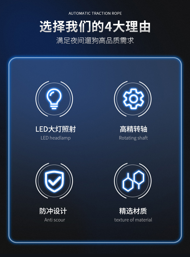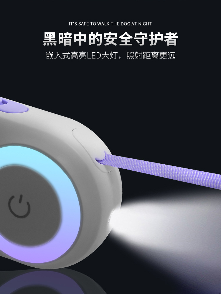 새로운 LED 발광 개 목줄 애완 동물 목줄 자동 개폐식 개 산책 목줄 개 목줄 개 용품 로프