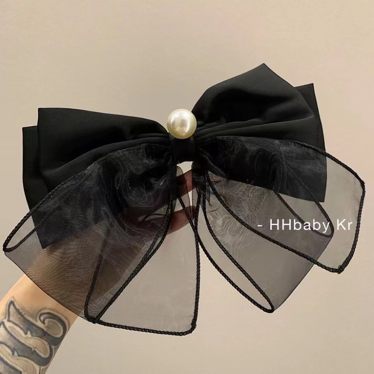 프랑스 스타일 샤넬 블랙 거즈 활 모조 진주 봄 클립 헤어 클립 달콤한 모든 일치 포니 테일 클립 헤어 액세서리스토어 가기