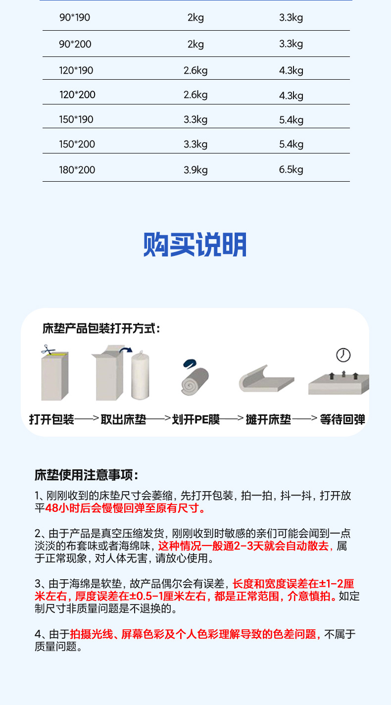 2024新款记忆20D海绵床垫家用学生宿舍软垫,民宿酒店垫上垫,都可以使用。大量备货,一件代发(包邮)。拒绝塌陷,并且耐用。深受广大用户喜爱。(产品厚度约5cm和8cm,到货会有0.5-1cm误差尺寸,介意者勿拍谢谢。打包发货会抽真空, 刚到货拆开,放置几个小时会反弹。)本品是记忆海绵,硬度属于偏软,亲确定好床的尺寸下单,床垫货大运费高,半路不要的退货和拒收的需要自己承担来回运费,请知晓。