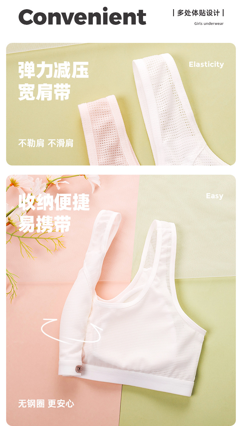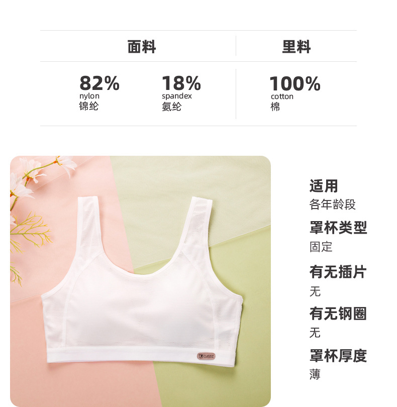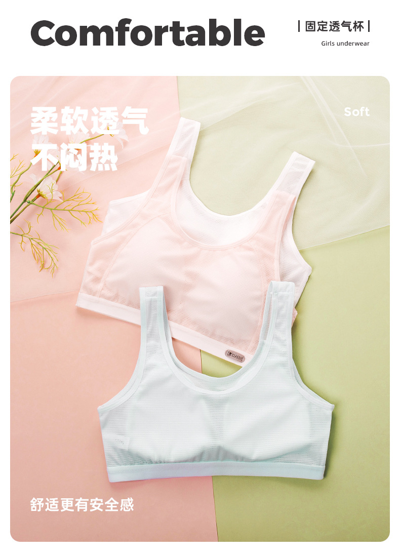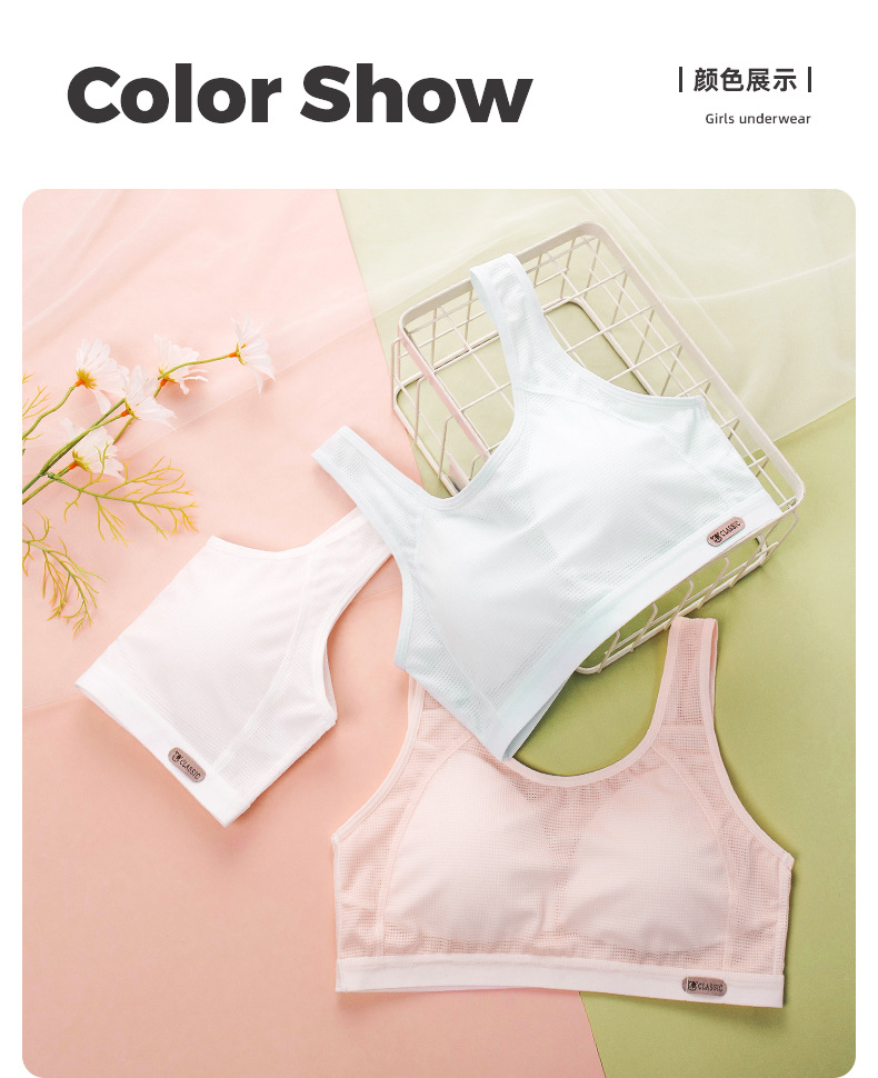여름용 얇은 발달기용 조끼형 여아 속옷 어린이 학생용 노와이어 메쉬 소녀 브라 스포츠 통기성스토어 가기