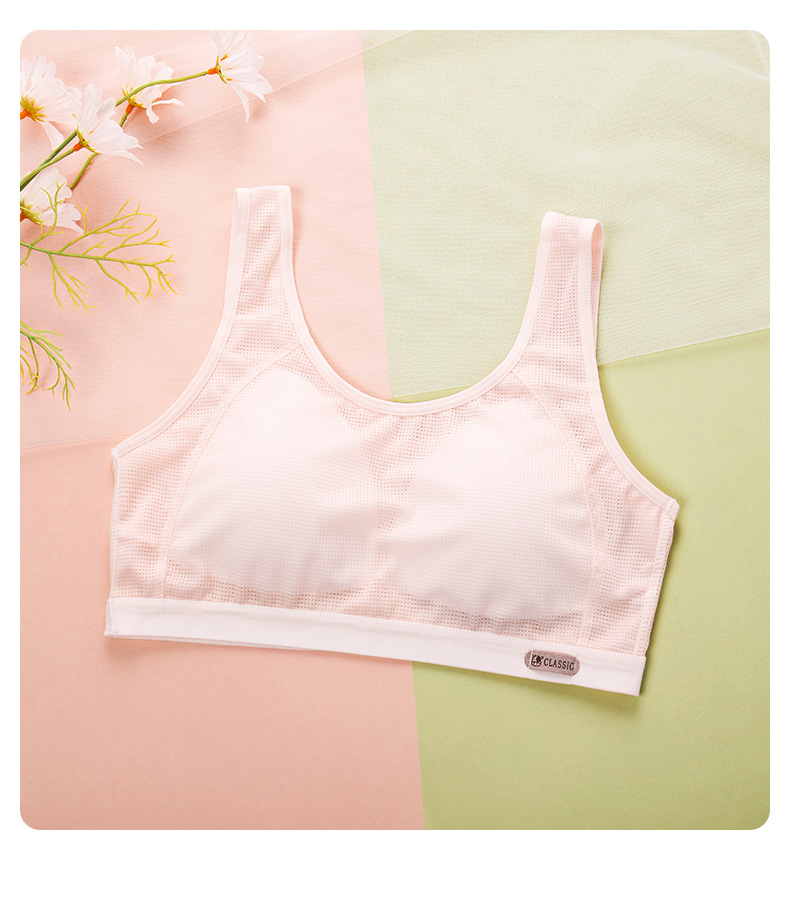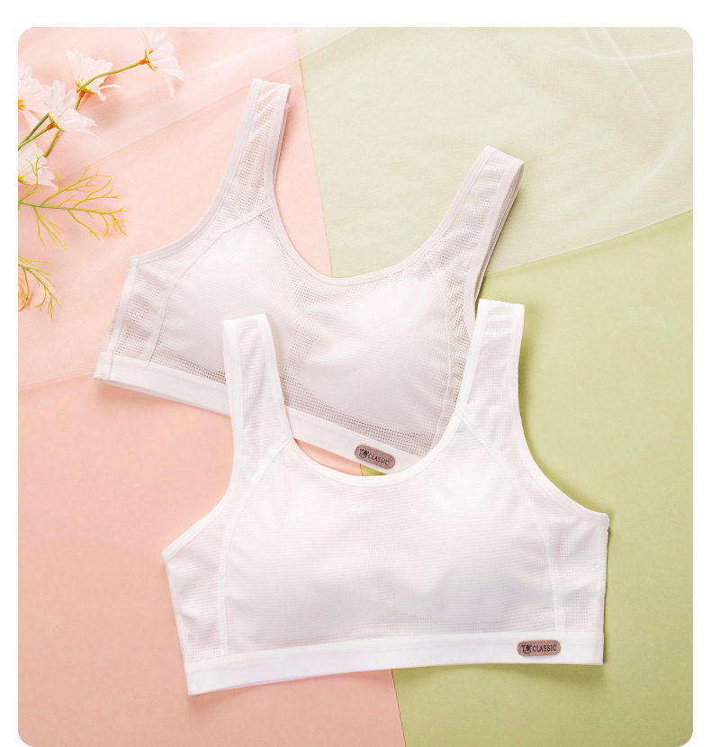 여름용 얇은 발달기용 조끼형 여아 속옷 어린이 학생용 노와이어 메쉬 소녀 브라 스포츠 통기성