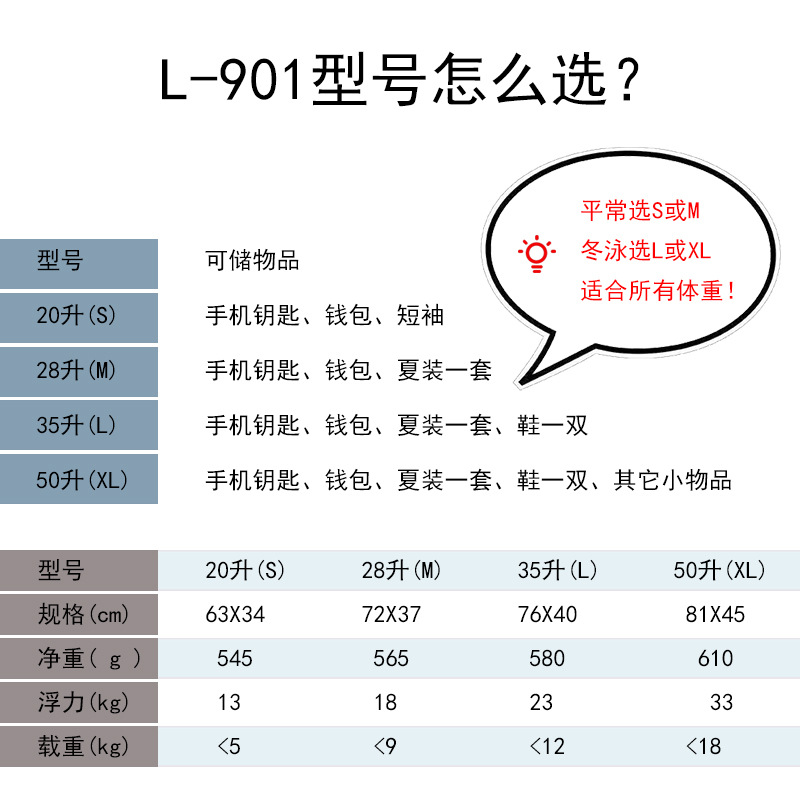 L901 저장 밀봉 강화 패턴 방수 플로트 백 장비 야외 수영 및 인명 구조 특수 웨이브 모양