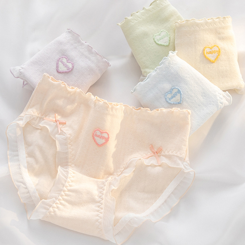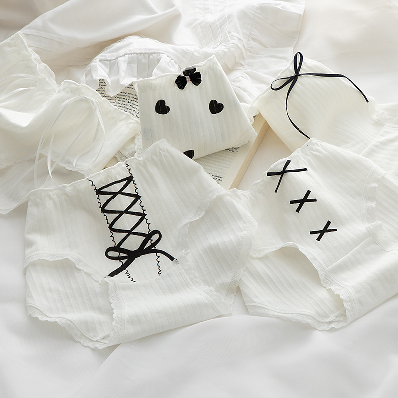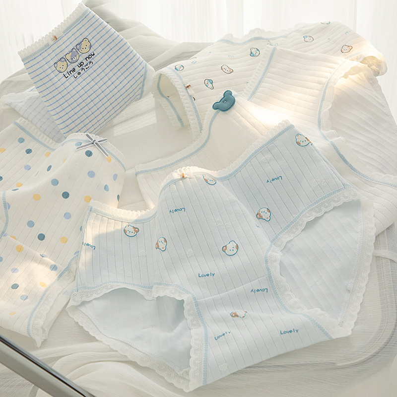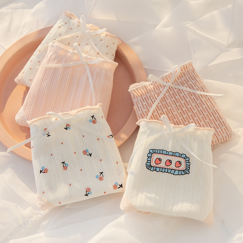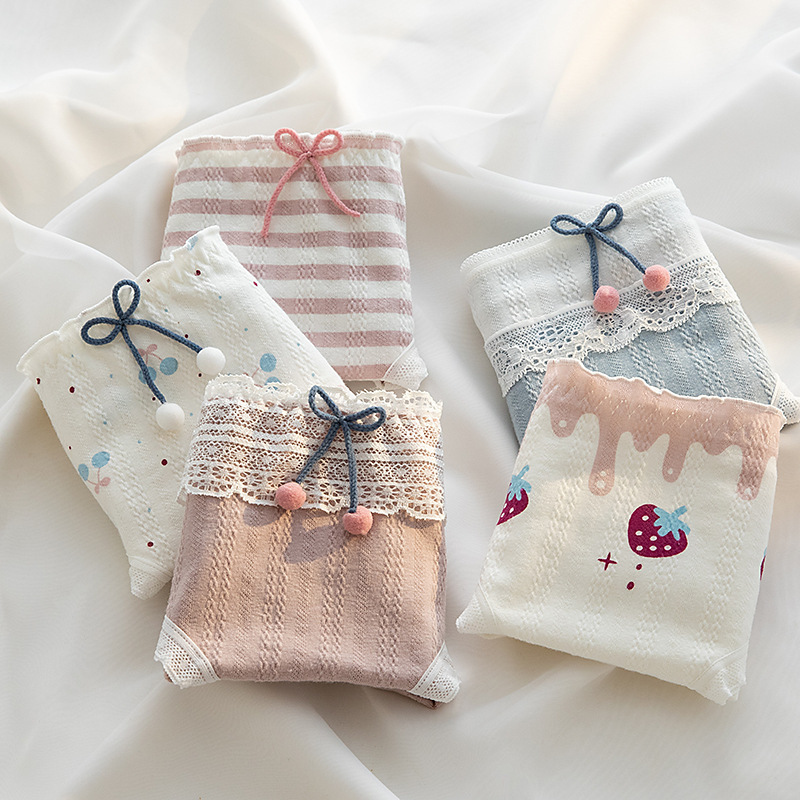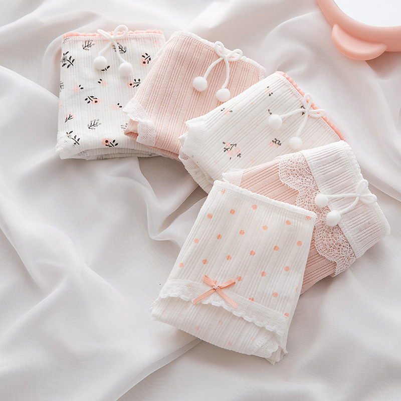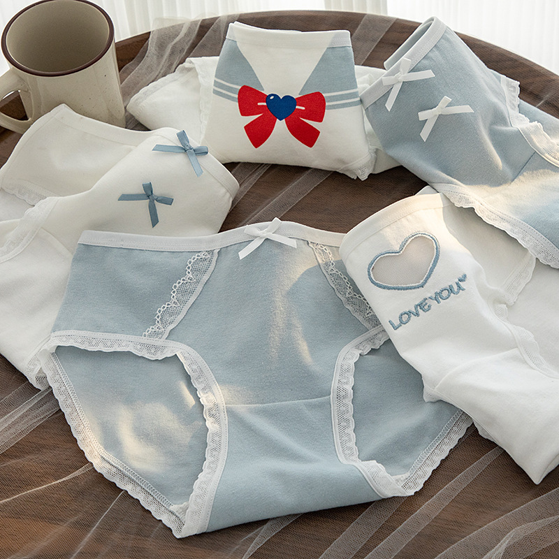 한국 스타일 스레드 속옷 달콤한 활 레이스 가장자리 속옷 여성용 순면 가랑이 미드 웨이스트 엉덩이 여아 팬티