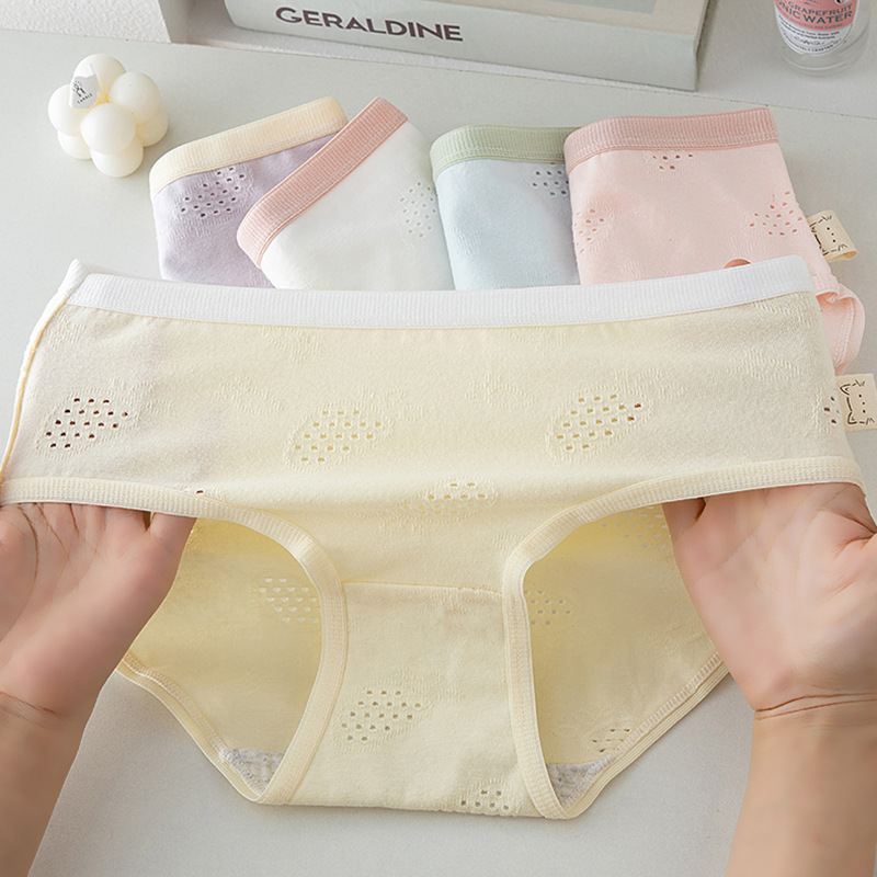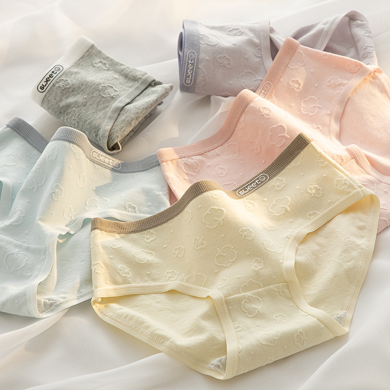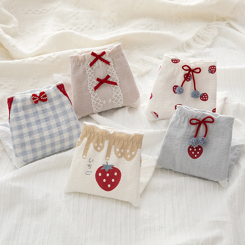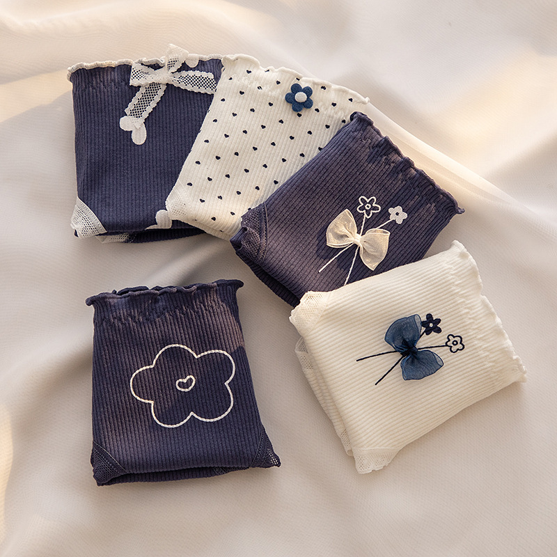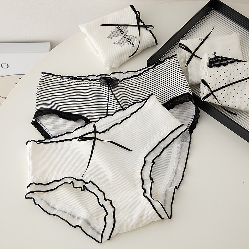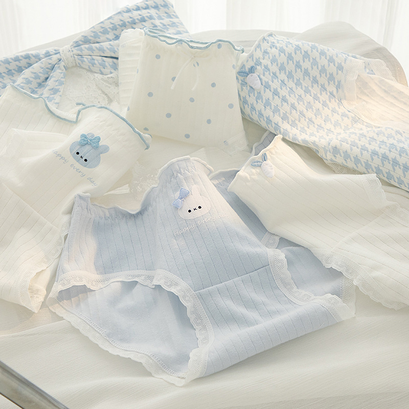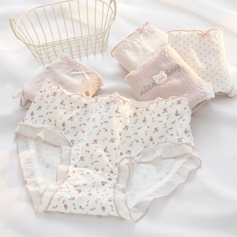 한국 스타일 스레드 속옷 달콤한 활 레이스 가장자리 속옷 여성용 순면 가랑이 미드 웨이스트 엉덩이 여아 팬티