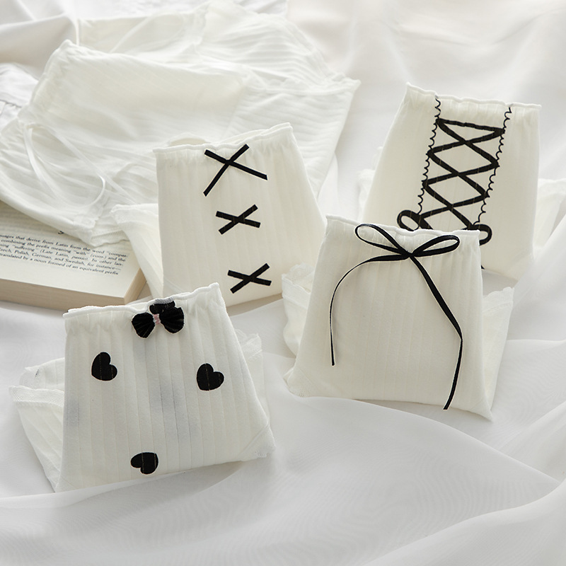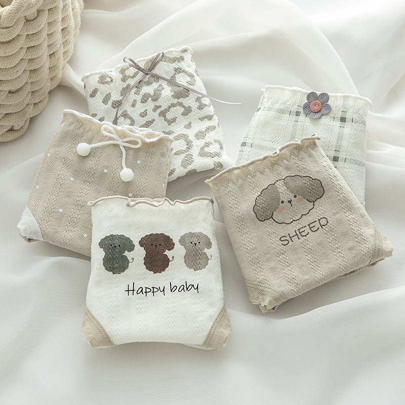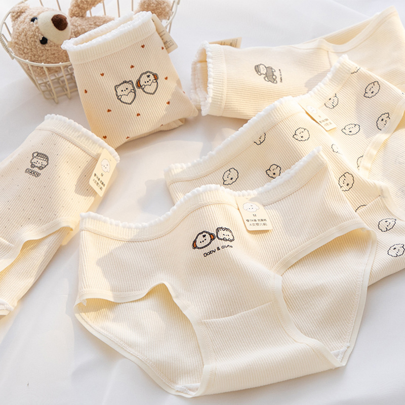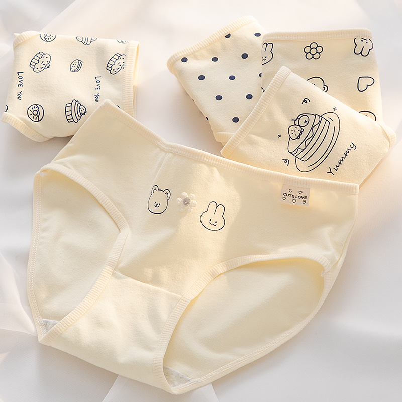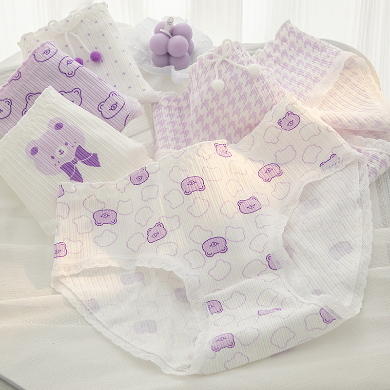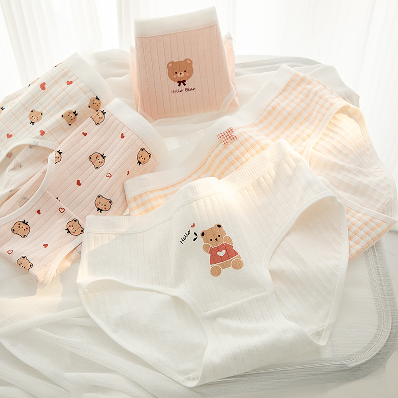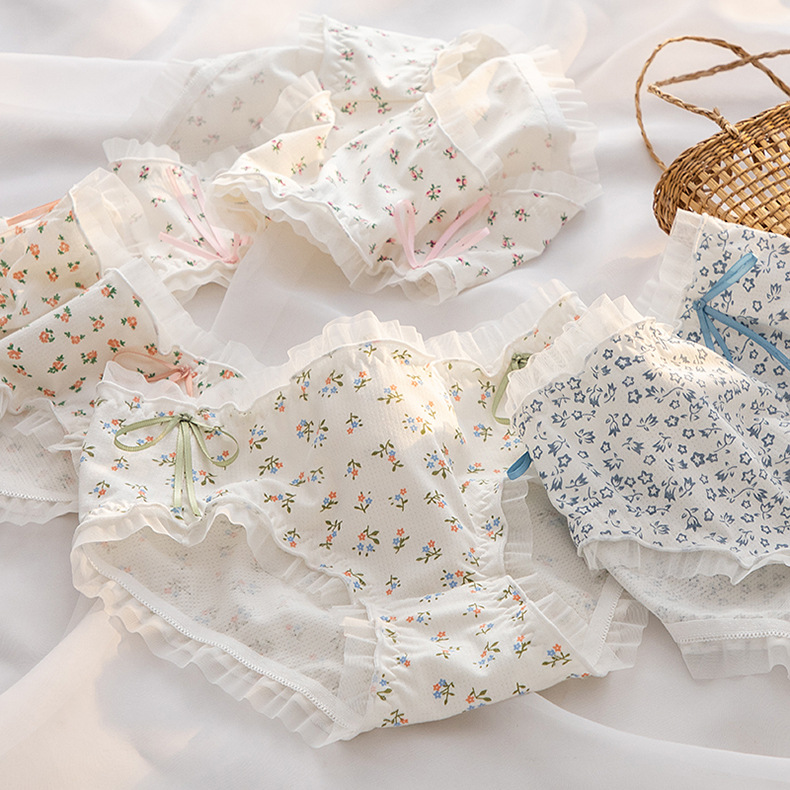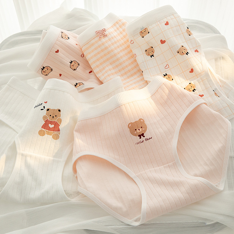 한국 스타일 스레드 속옷 달콤한 활 레이스 가장자리 속옷 여성용 순면 가랑이 미드 웨이스트 엉덩이 여아 팬티스토어 가기